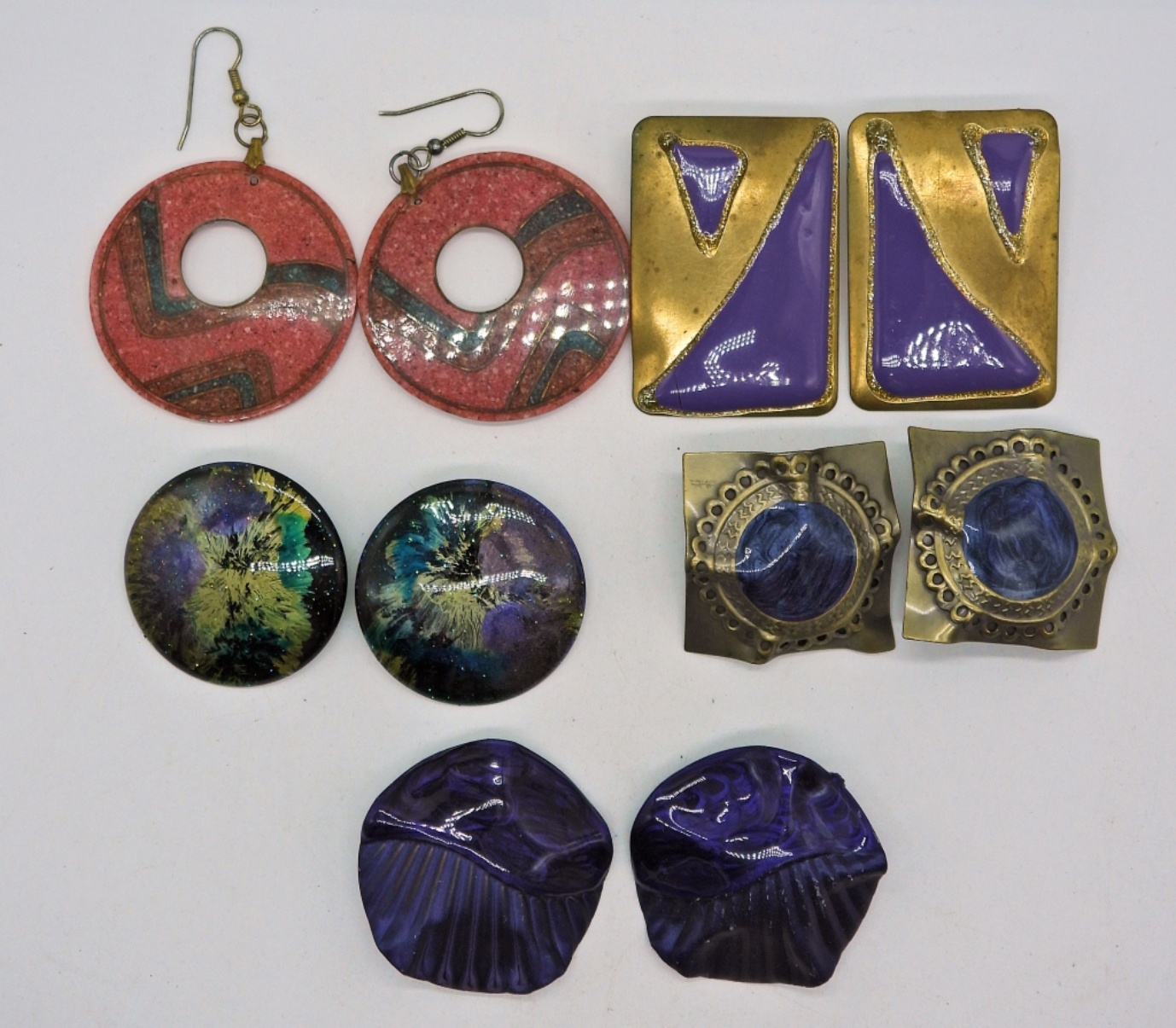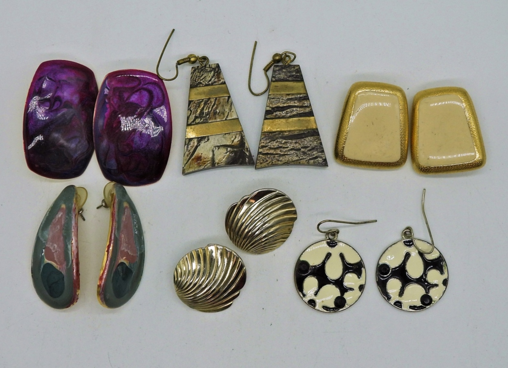 Fourteen Pair of Vintage 1980’s Fashion Earrings. Most are pierced, 2 are clip on. Various Sizes and Colors.
