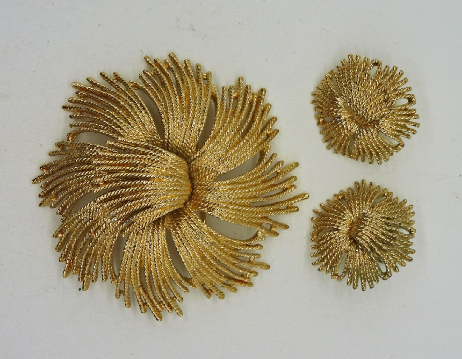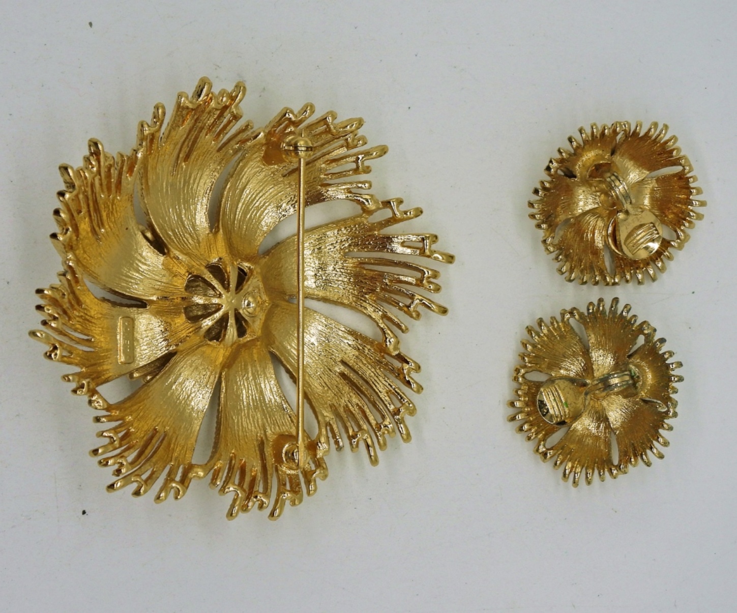 Large Vintage Gold Tone, Monet Brand Brooch. 2.5″. Matching Clip On Earrings. 1″.