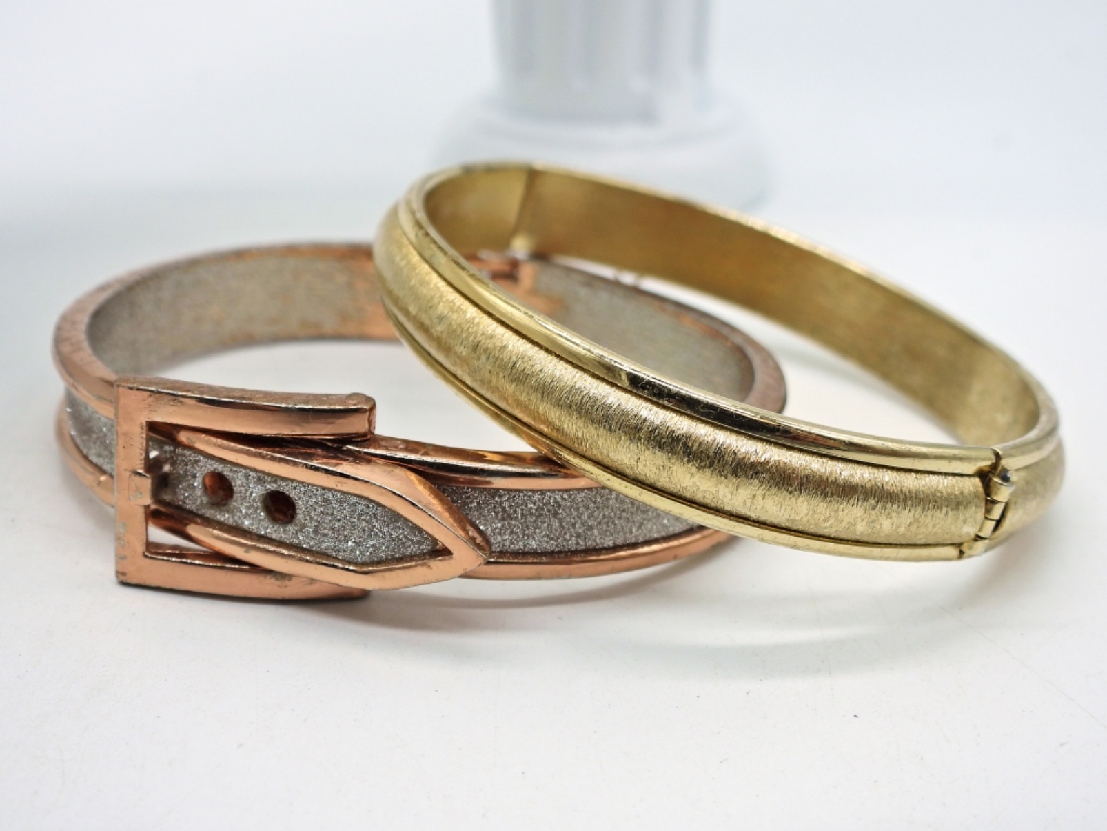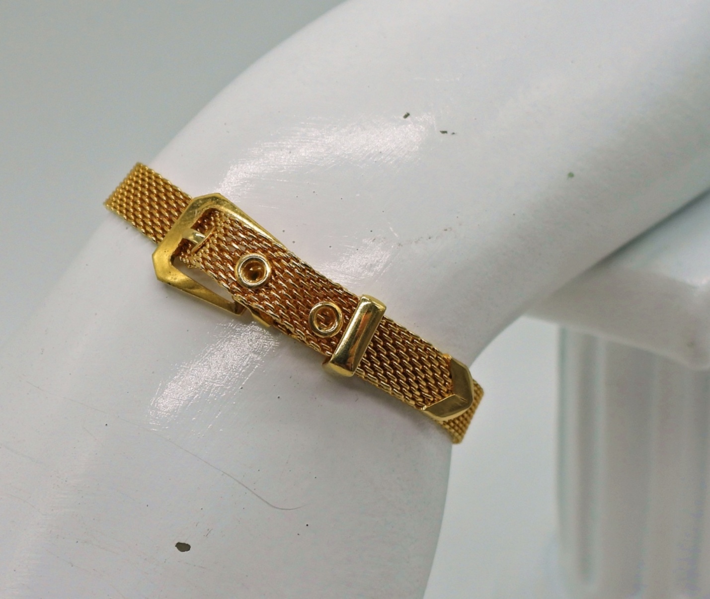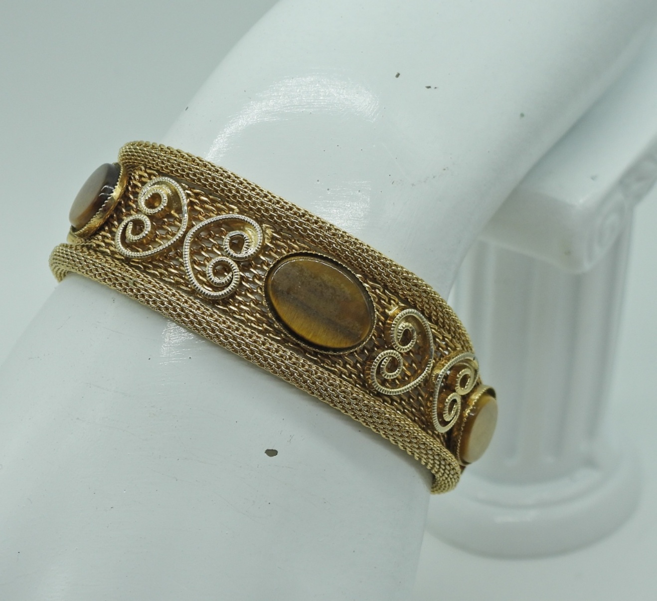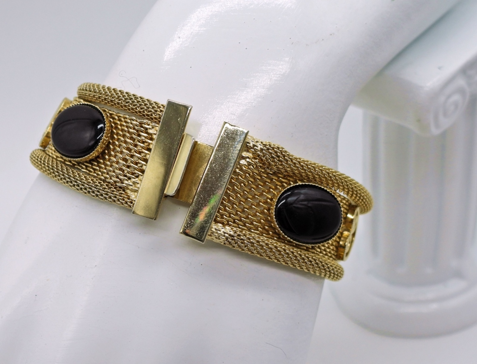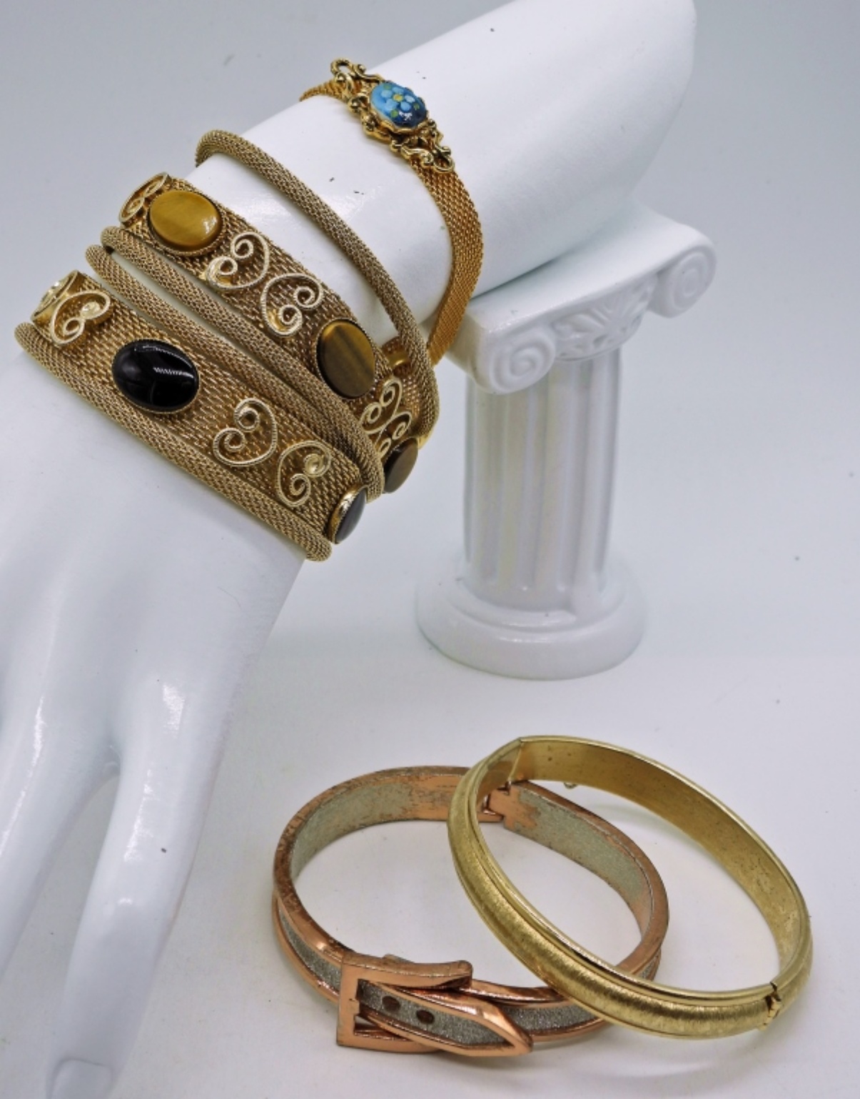 Five Gold Tone Bracelets with Gemstones.
