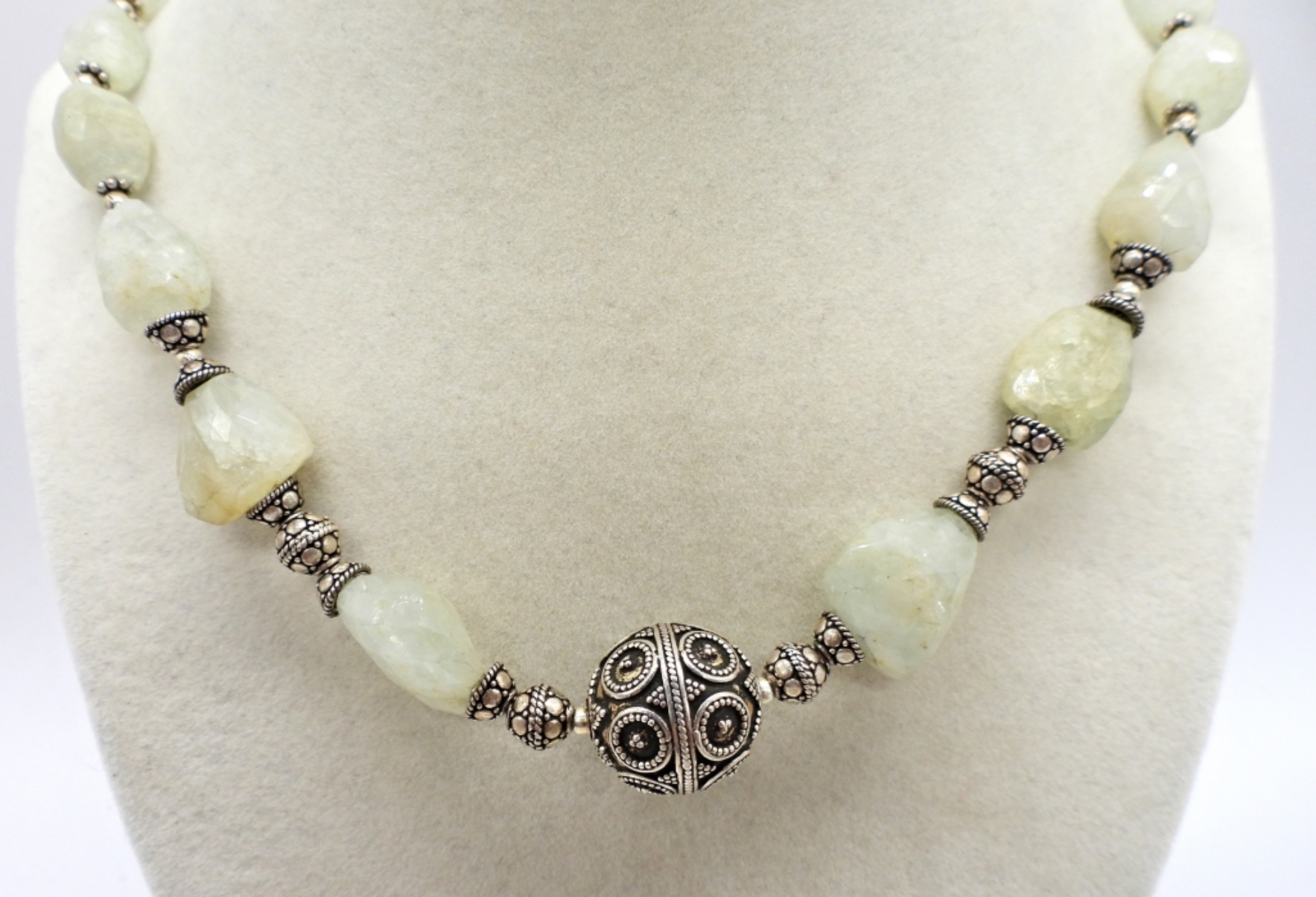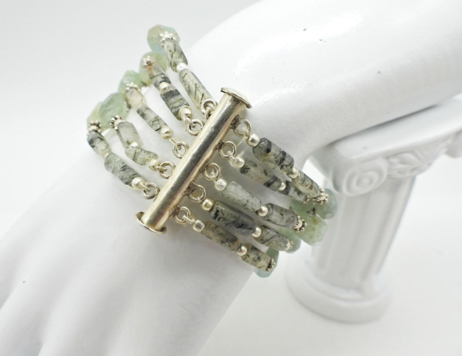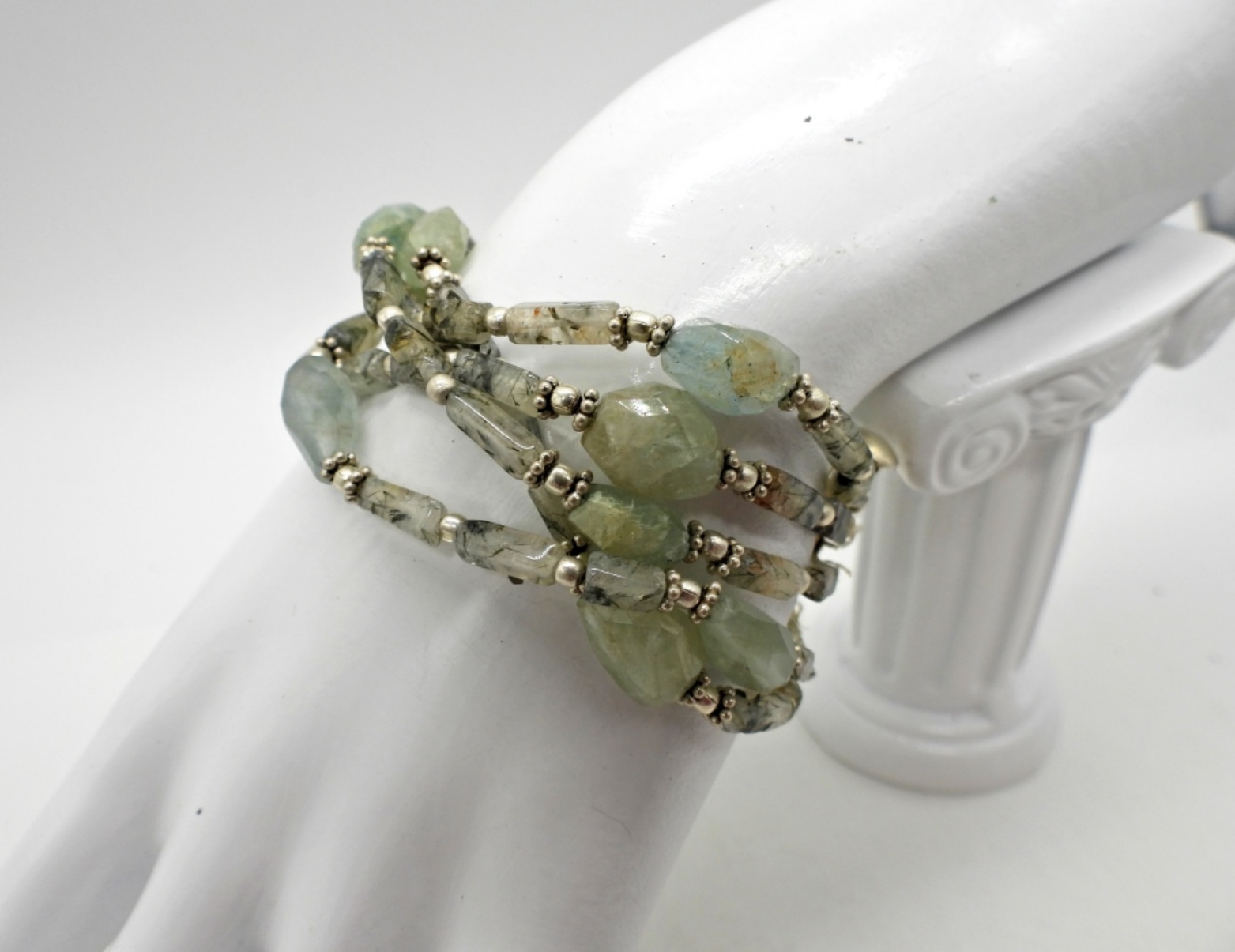 Beautiful Natural Gemstone Necklace and Bracelet with Sterling Silver Clasps. Aquamarine, Rutilated Quartz, Labradorite. Necklace is 18-20″ adjustable. 5 strand bracelet, 7″.