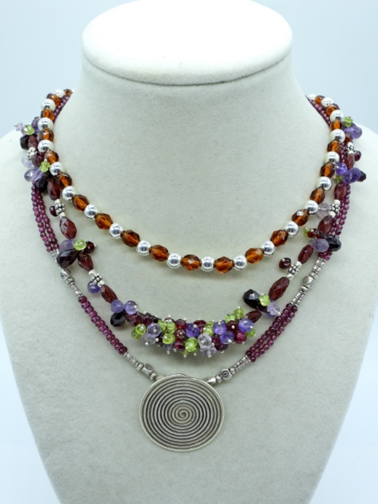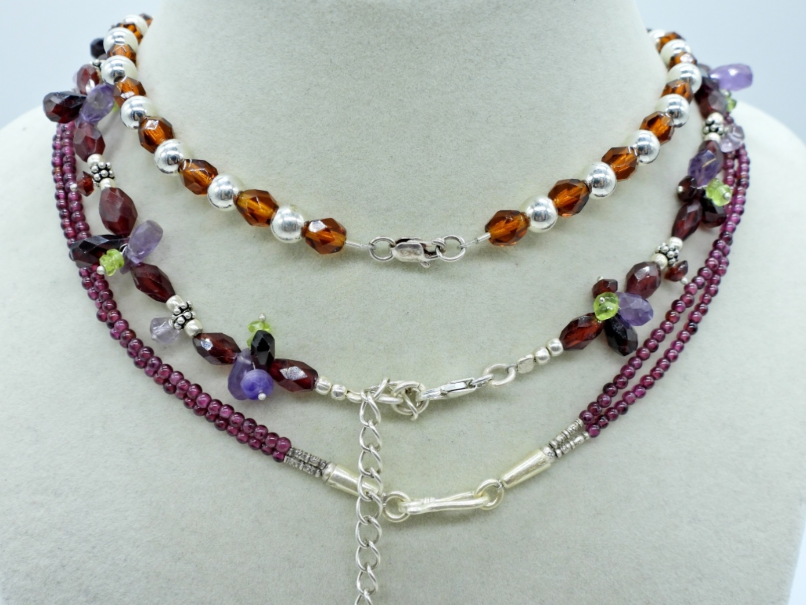 Three Beaded Natural Gemstone Necklaces. 15″, 16″-18″ adjustable (Sterling Clasp) & 18″.