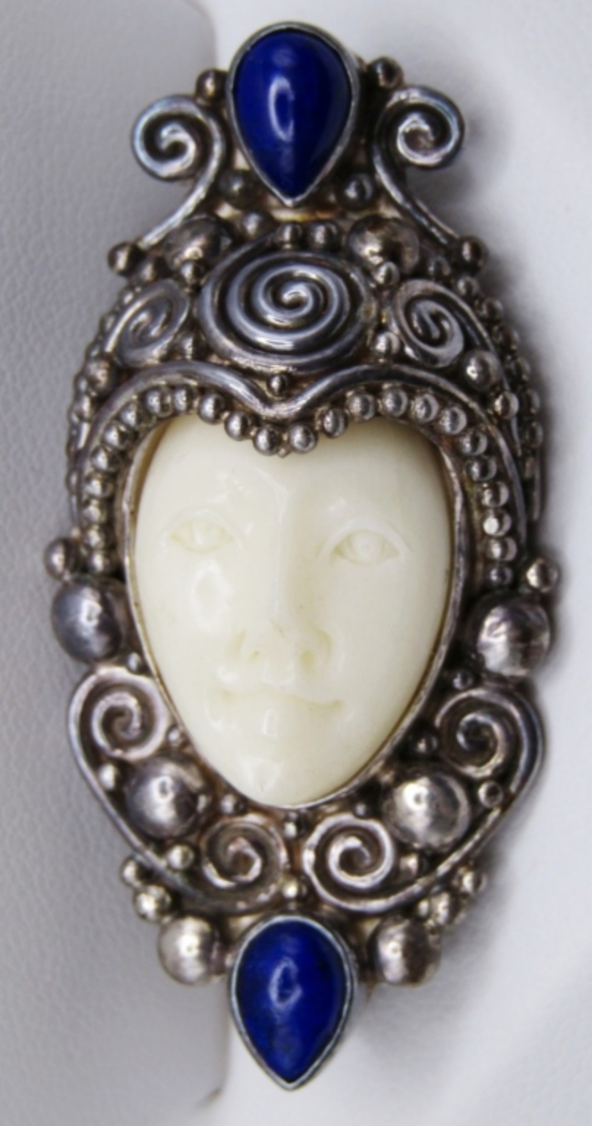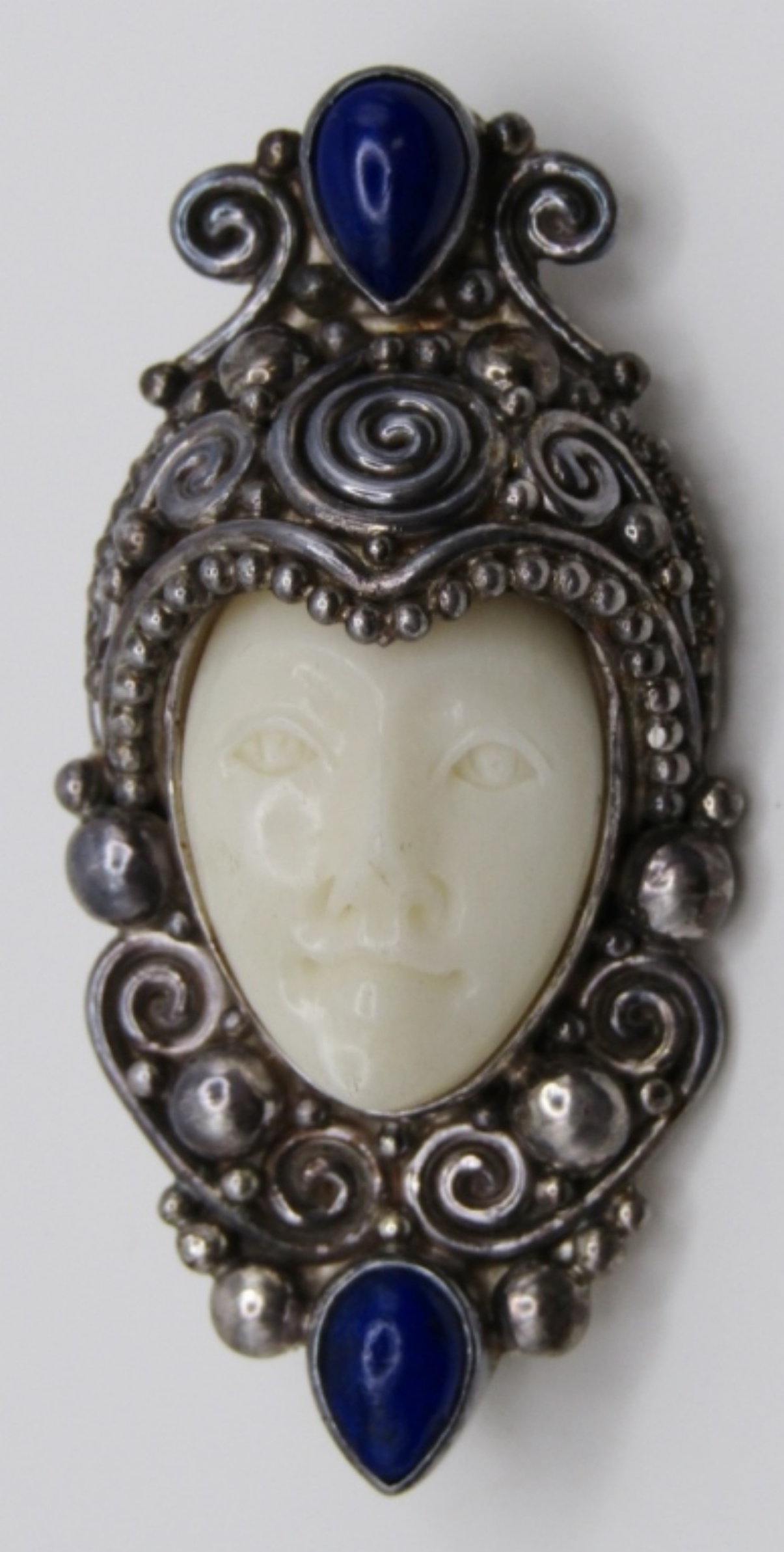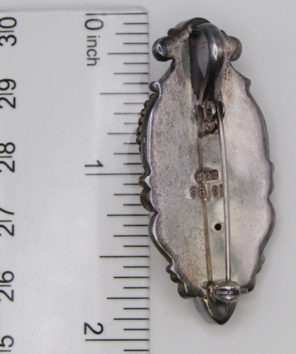 12 DWT. 1.75″ WITH BAR PIN & PENDANT LOOP. WITH GEMSTONES. STAMPED “SAJEN 925”