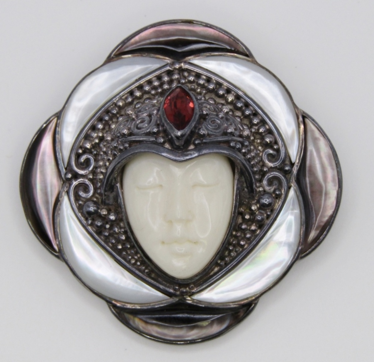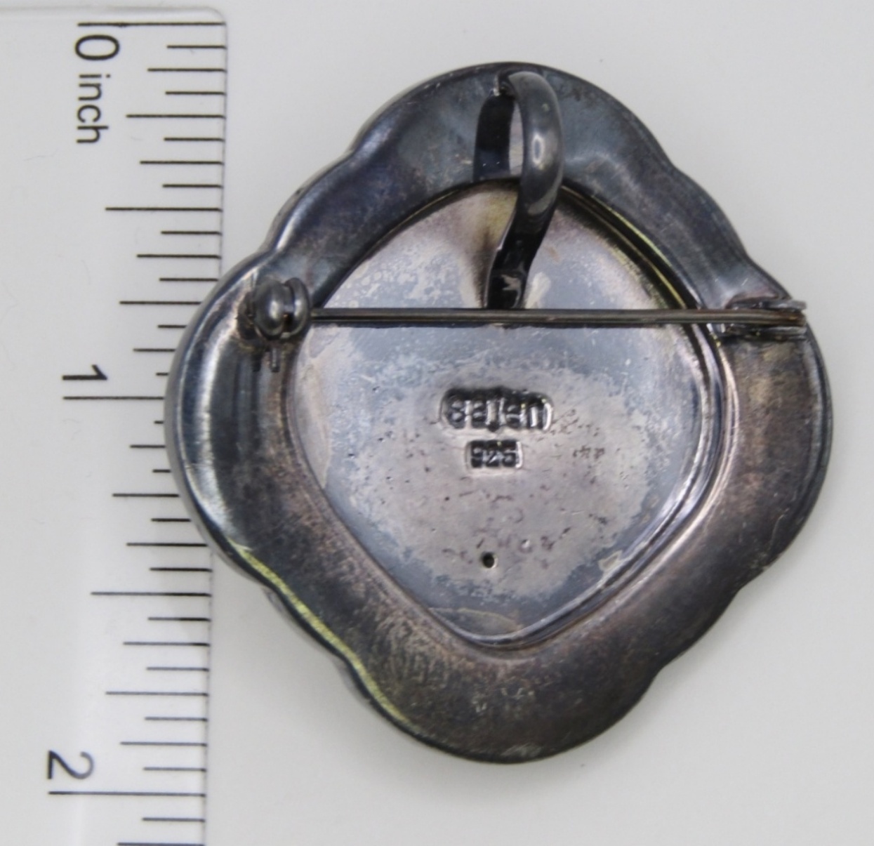 18 DWT. 1.75″ WITH BAR PIN & PENDANT LOOP. WITH GEMSTONES. STAMPED “SAJEN 925”