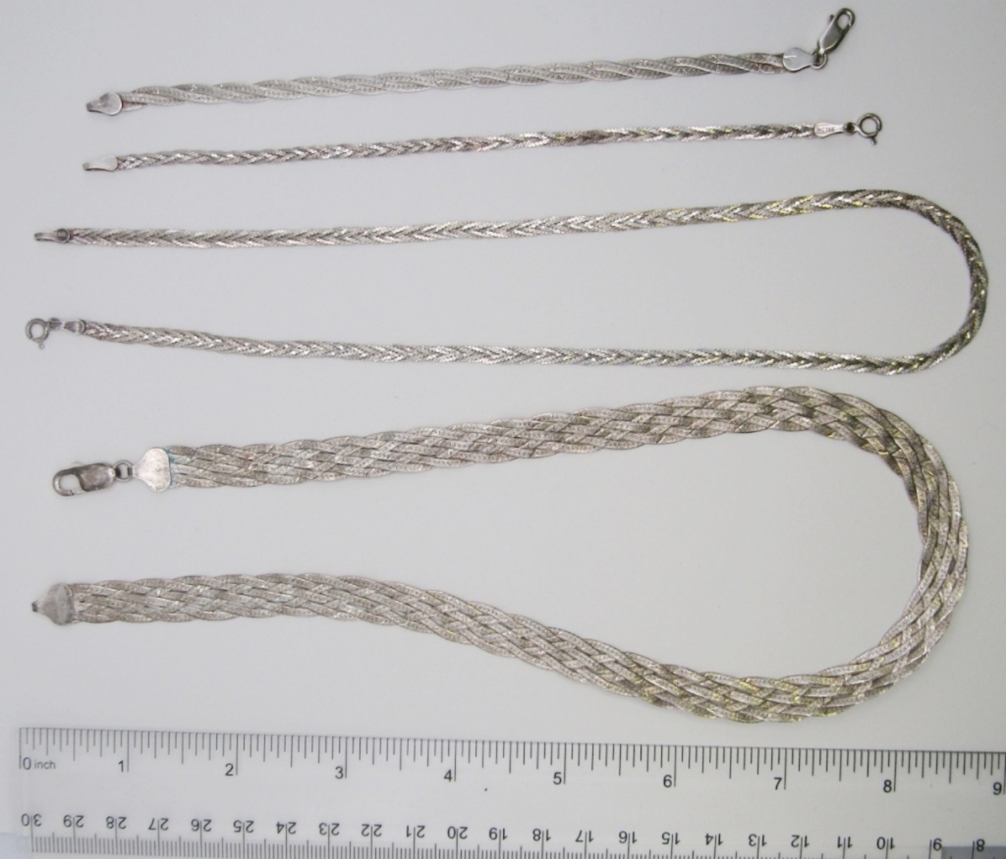 24 DWT. 18″ ITALY NECKLACE, 7″ ITALY BRACELET. MATCHING” 925 MEX” SET 7″ BRACELET 17.5″ NECKLACE. ALL STAMPED 925