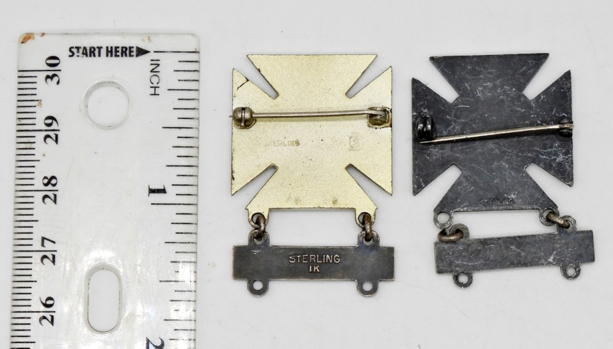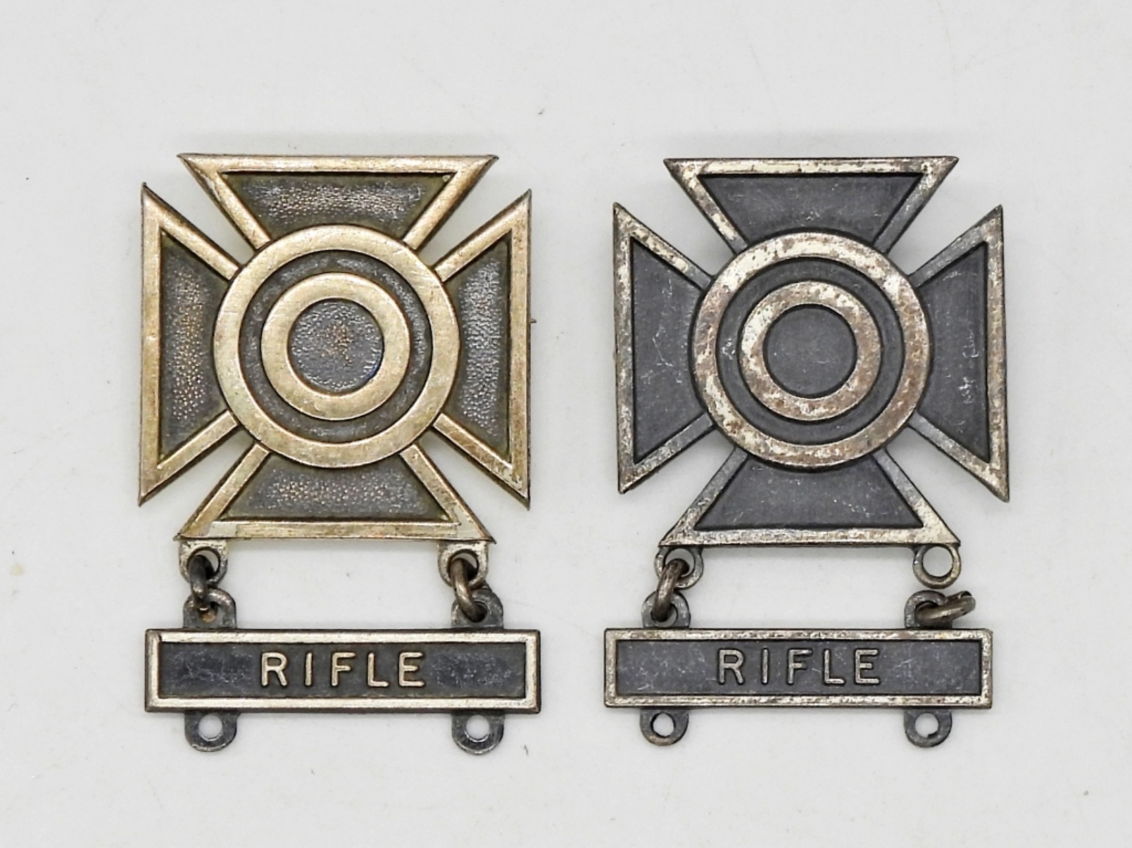 RIFLE MILITARY PINS STAMPED STERLING; 13.6 DWT