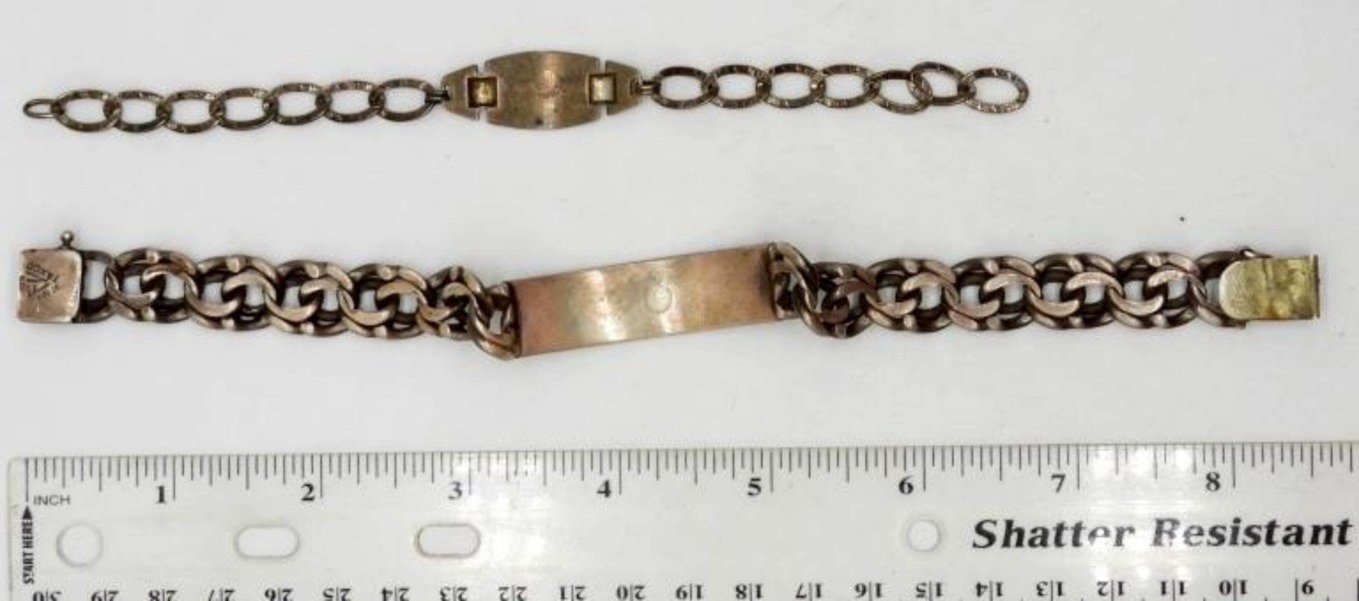 (1) ENGRAVED “MARY TRANTER” STAMPED STERLING – 6.5 INCH; (1) STAMPED TAXCO STERLING – 8.5 INCH; TOTAL 35 DWT