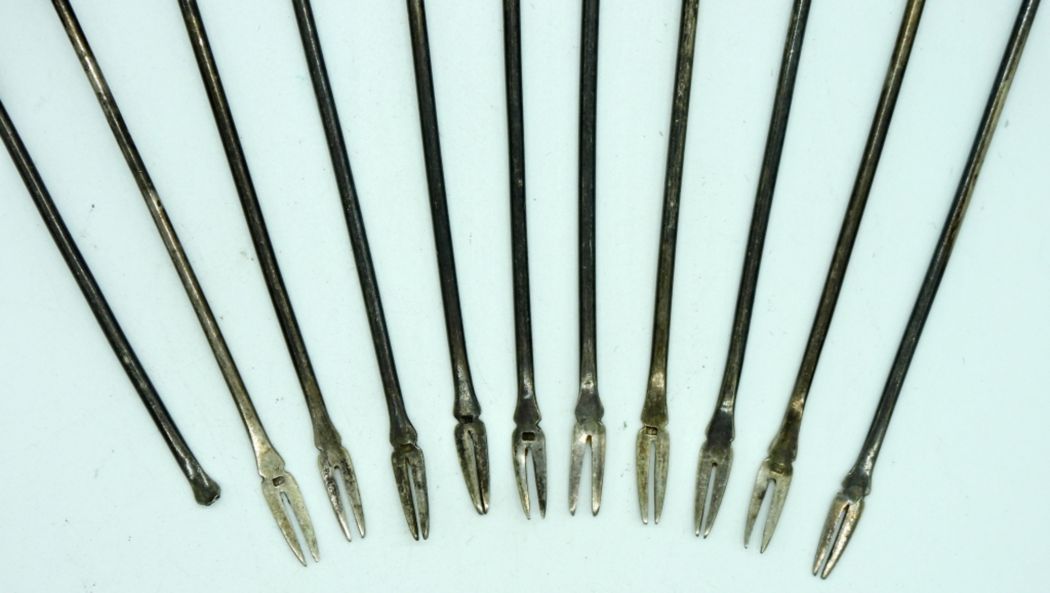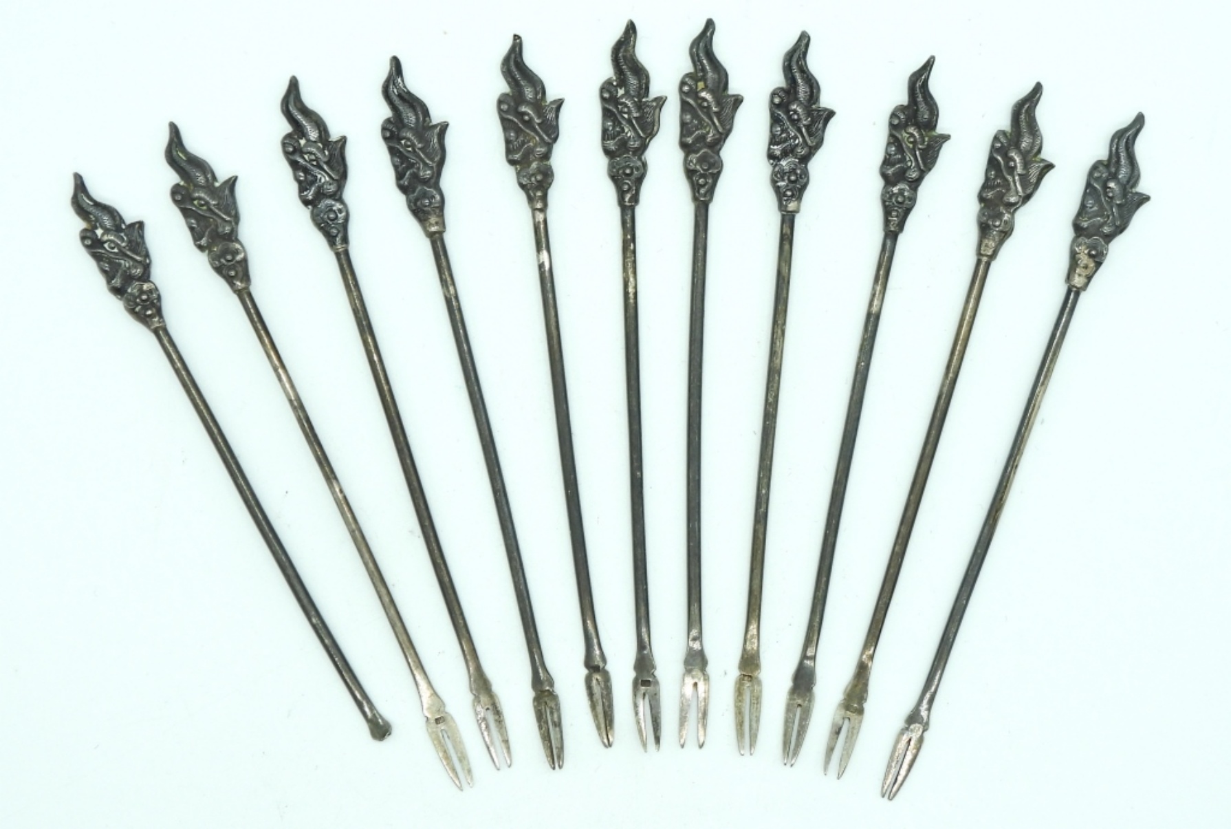 Vintage Sterling cocktail olive forks. One is missing the tines. Dragon head embellishes the end of the fork. (27 DWT)