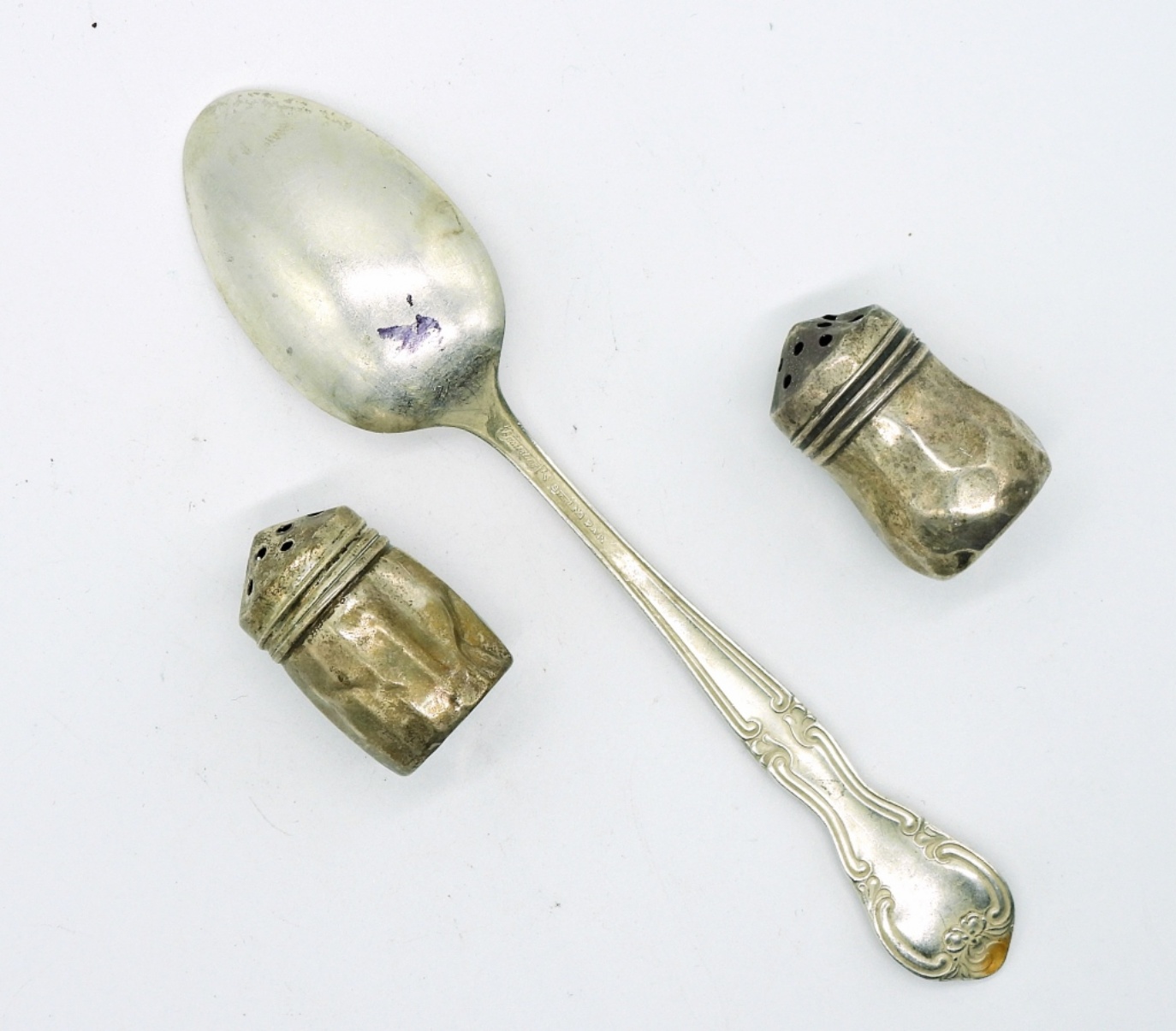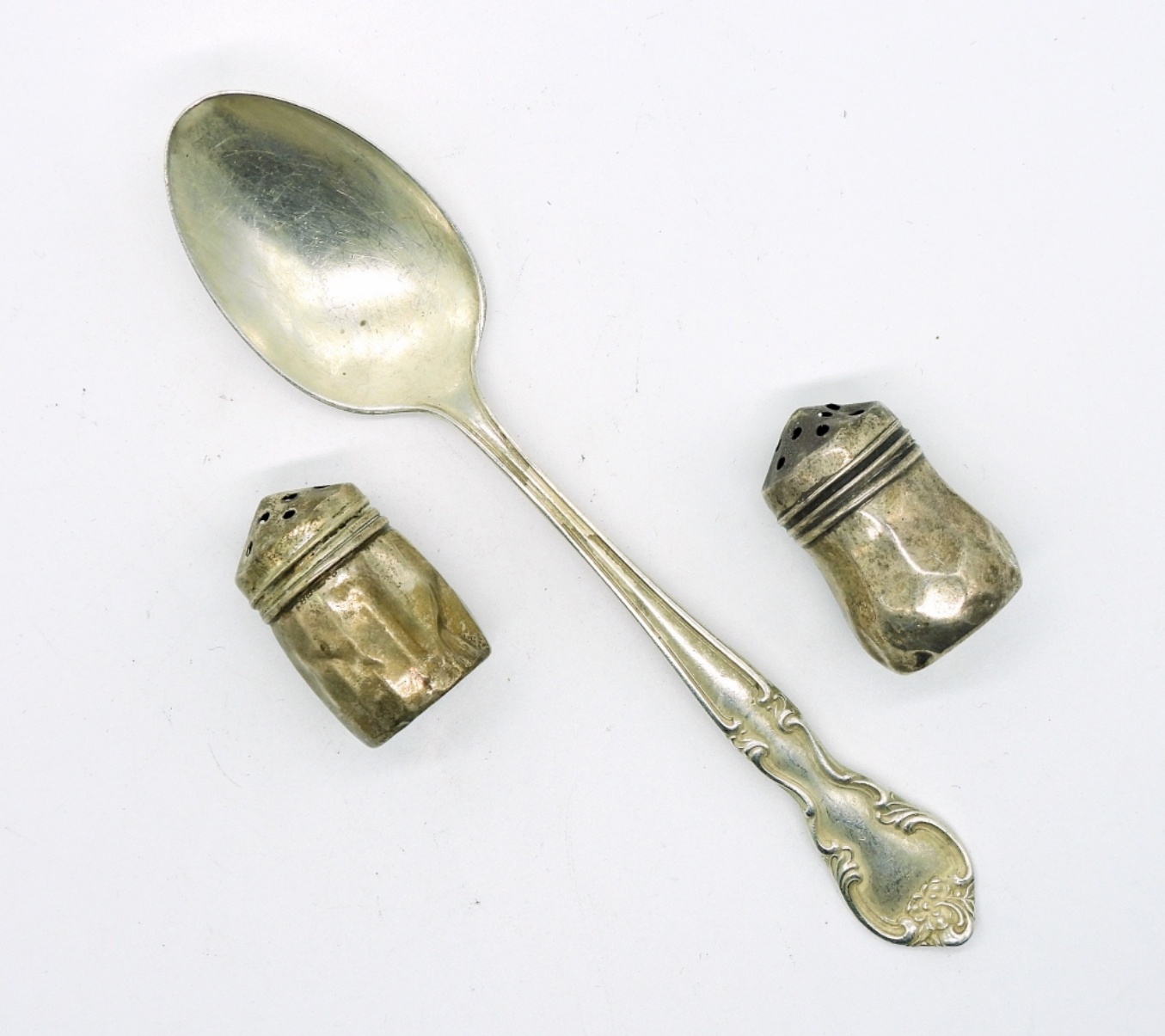 Sterling Fancy Spoon and two mini shakers(21.2 DWT)