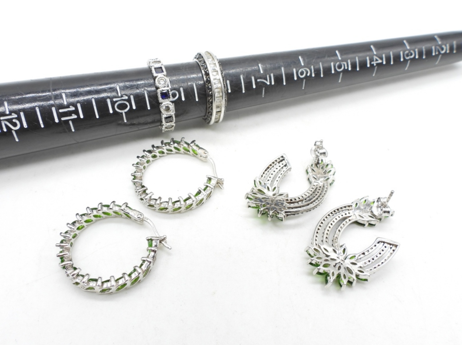 Two pairs of earrings, and two rings size 8-9. Very pretty set! (DWT 16.2)