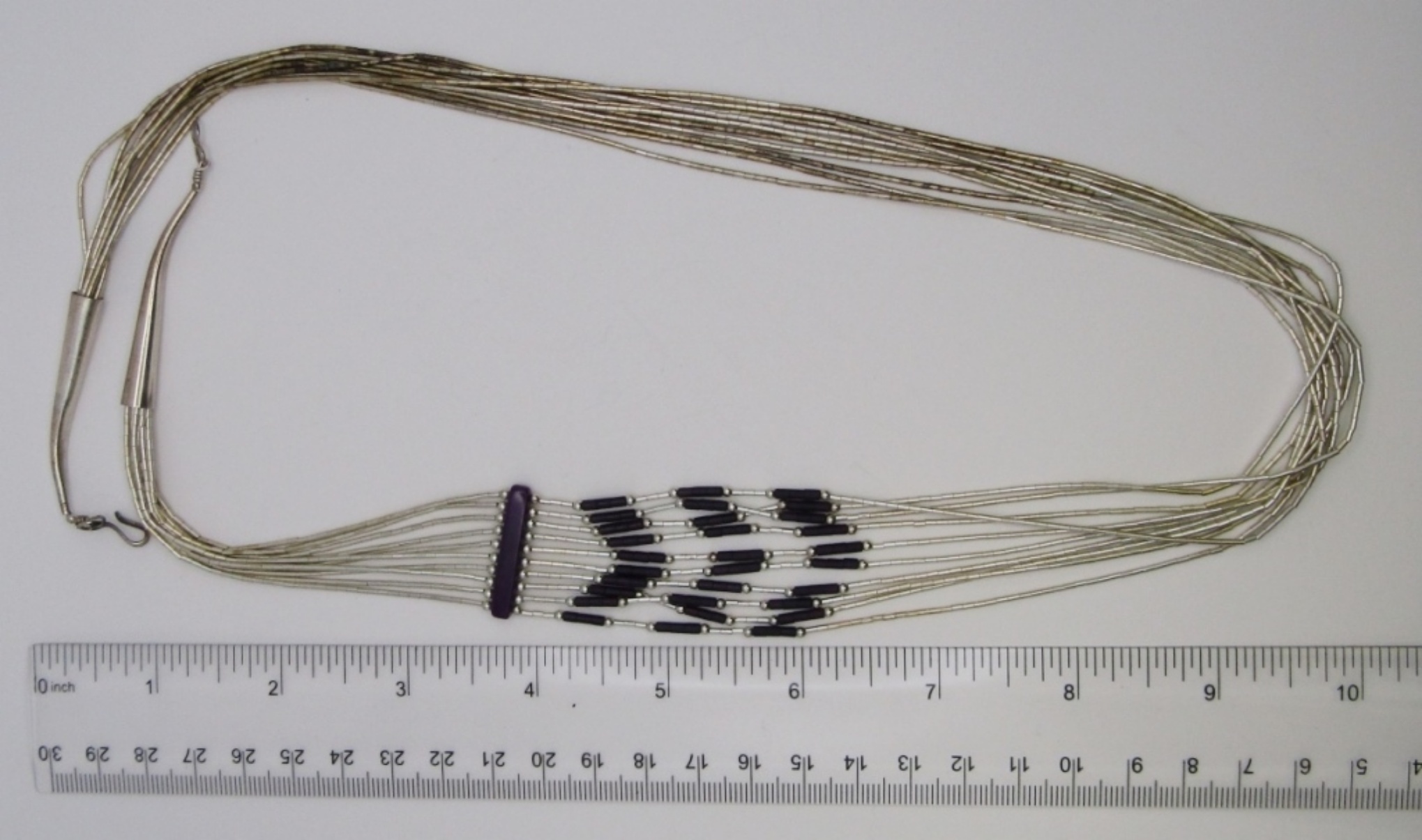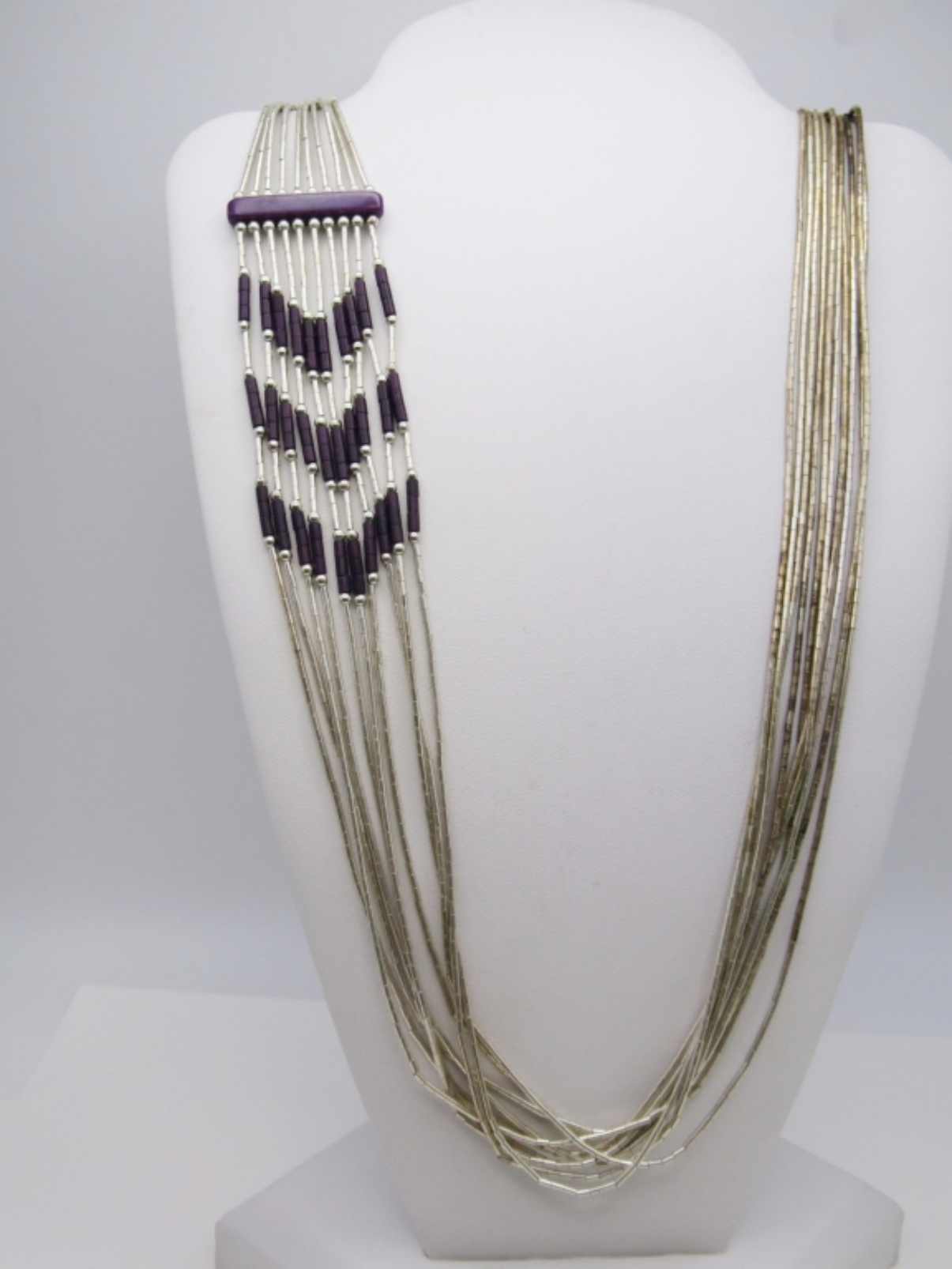 21 DWT. 24″ NECKLACE WITH PURPLE ACCENT BEADS. STAMPED STERLING
