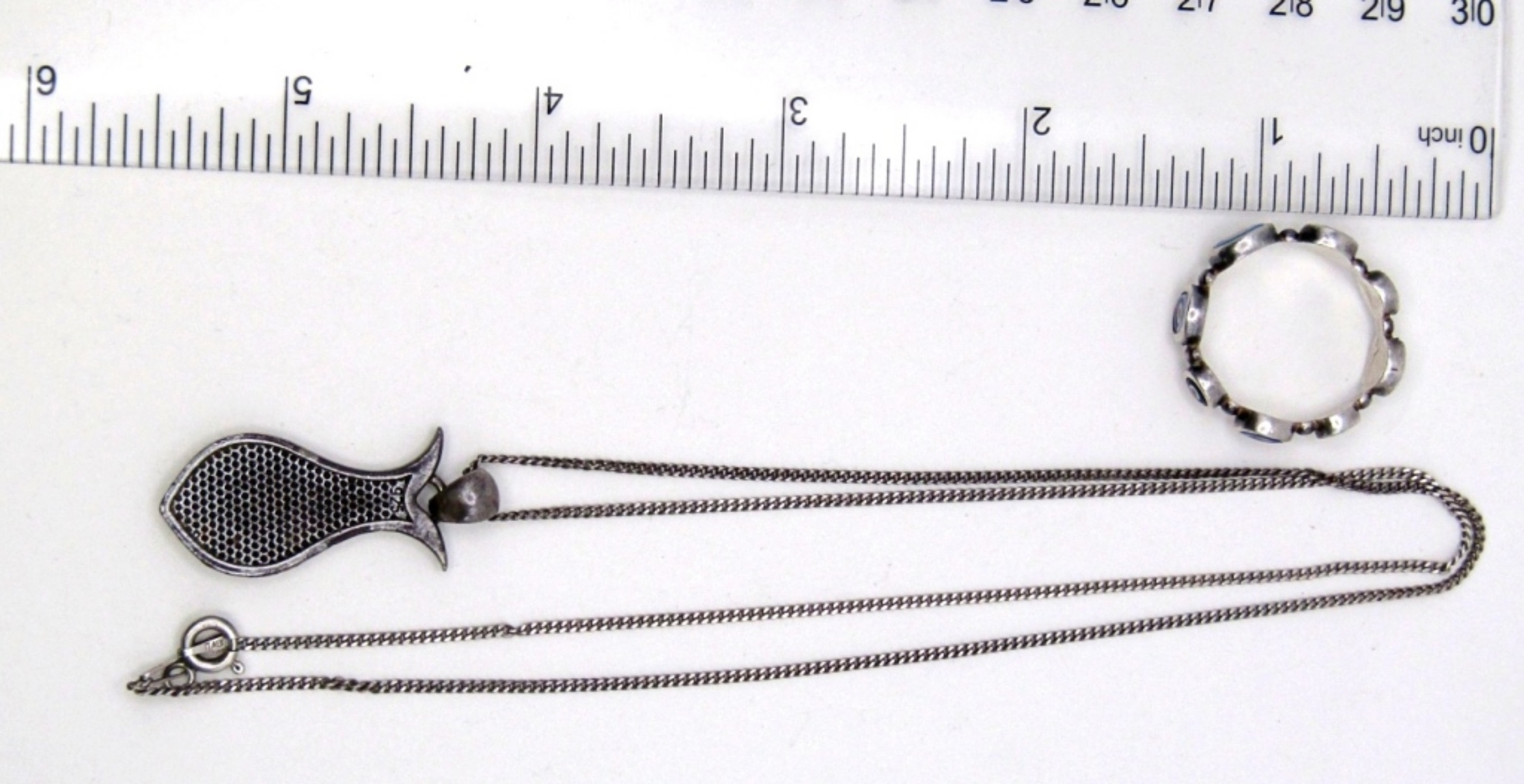 8 DWT. 20″ NECKLACE W/ 1.25″ VERY GAVELLO PENDANT & SIZE 8.75 RING. ALL STAMPED 925