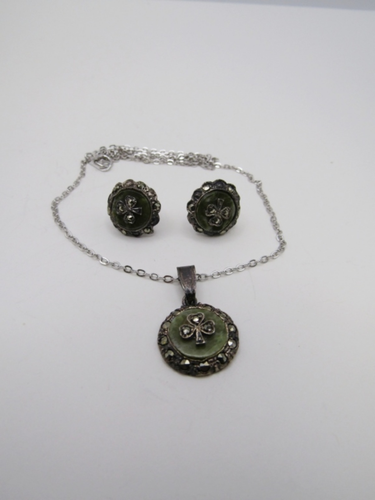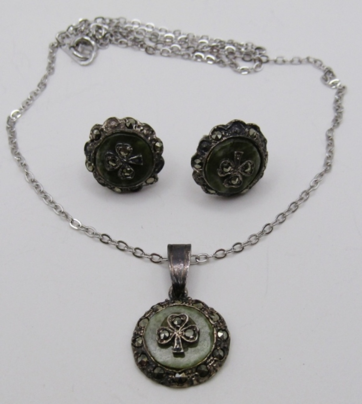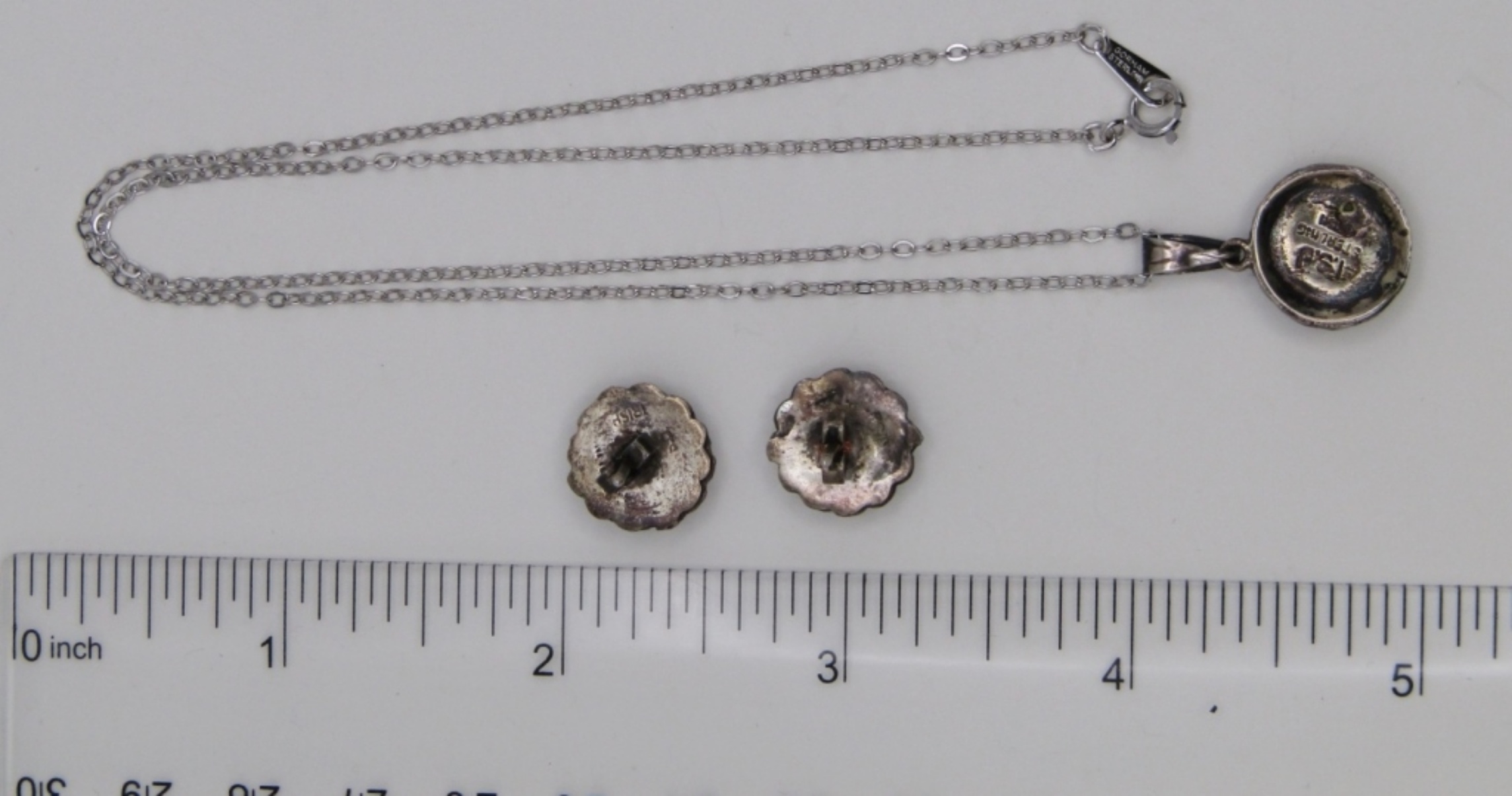 5 DWT. MATCHING 16″ NECKLACE & PIERCED STUD EARRINGS. ALL STAMPED STERLING.