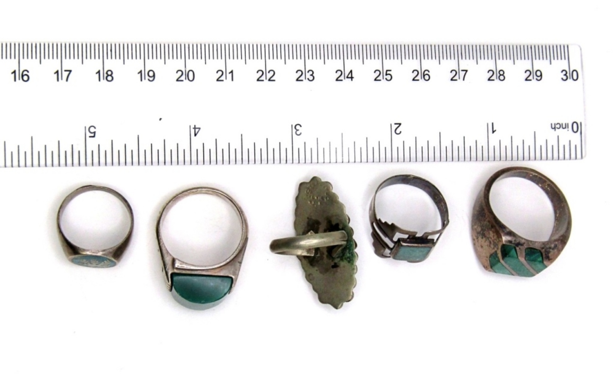 29 DWT. ALL BUT ONE STAMPED 925 OR STERLING.SIZES: 6.25, 8.5, 6, 10.5, 9.5