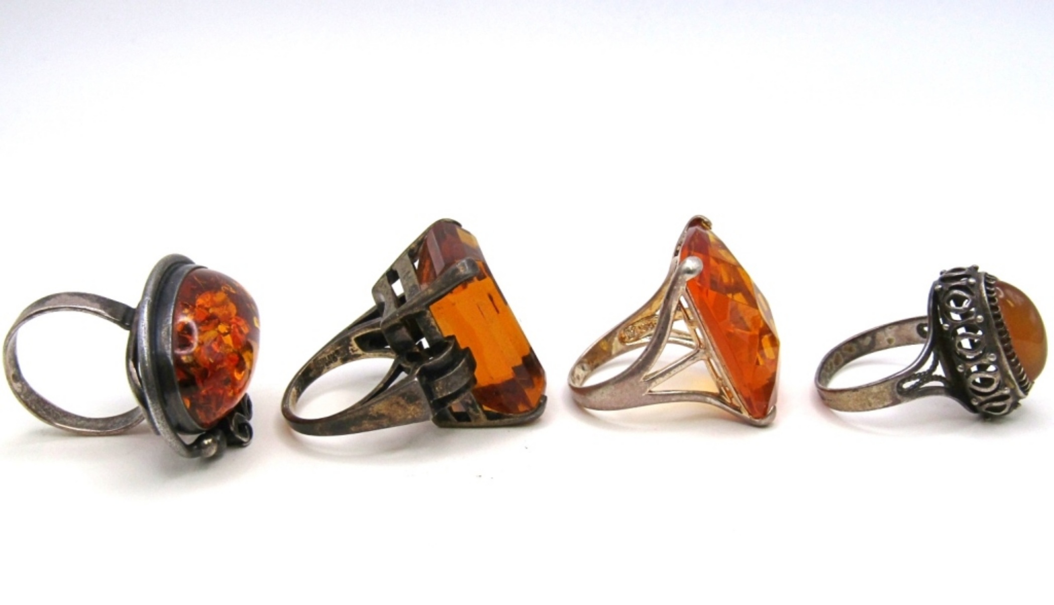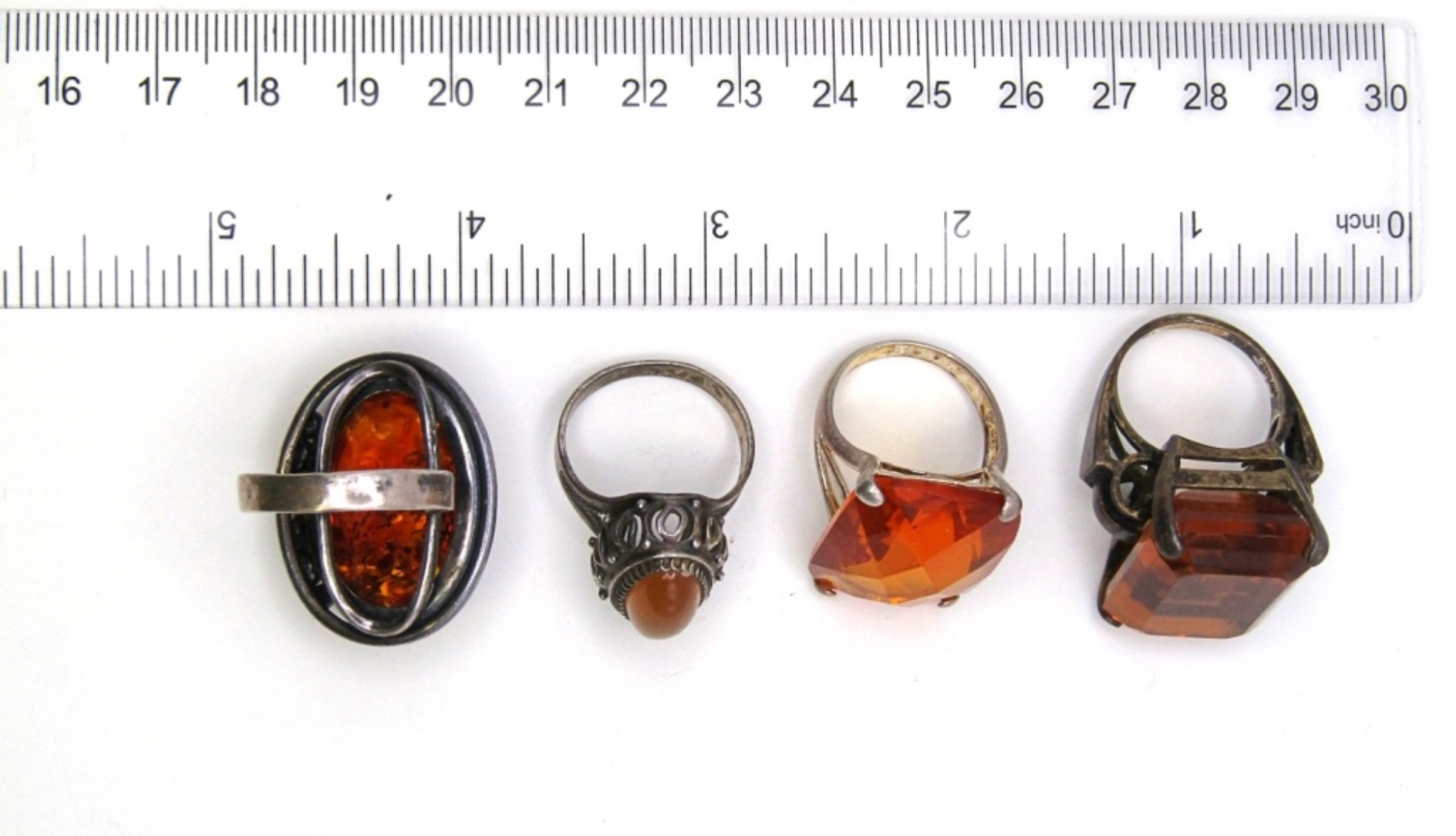 25 DWT. (3) STAMPED 925 STERLING & (1) STAMPED 875. SIZES: 8, 7, 8.5, 7.