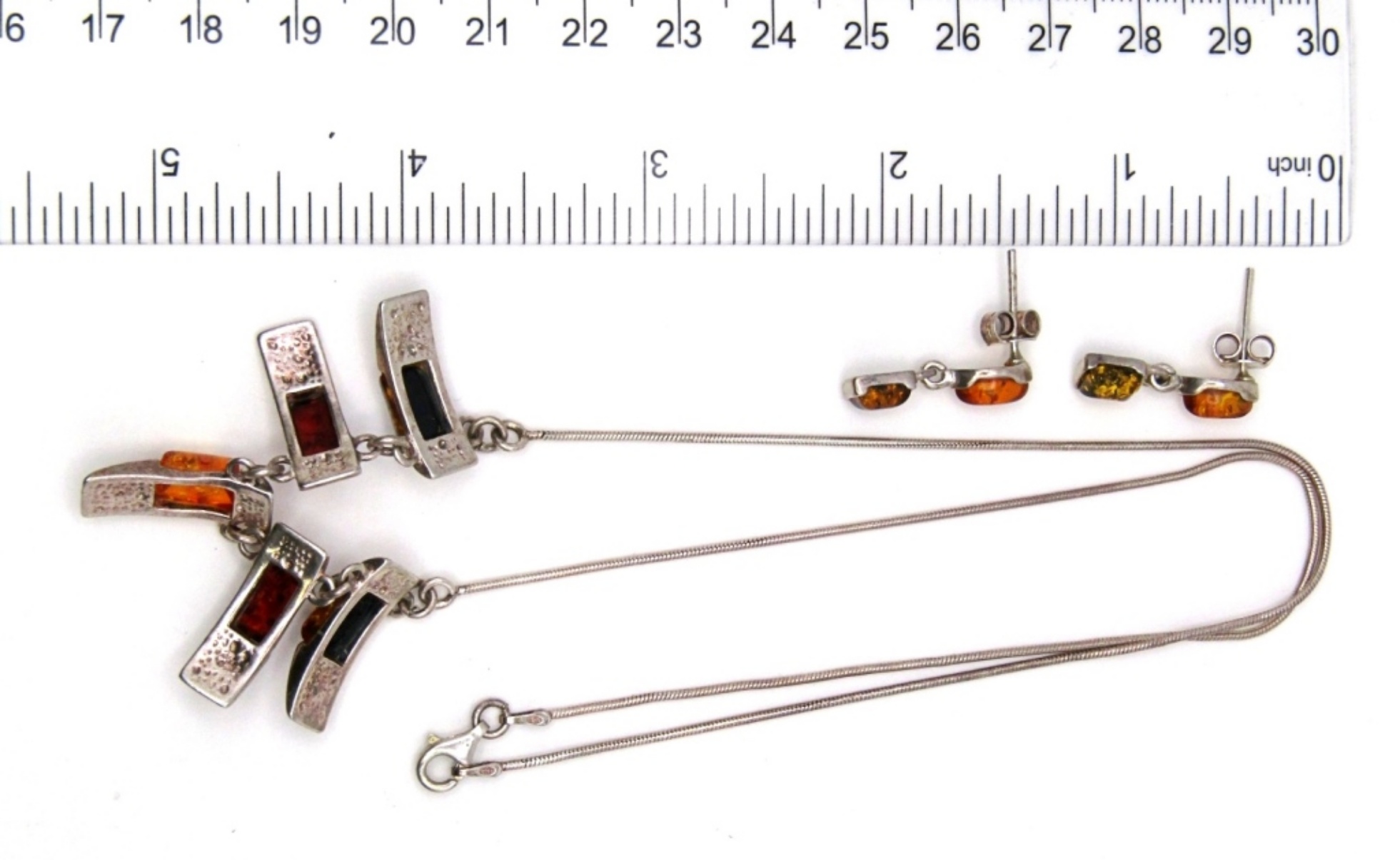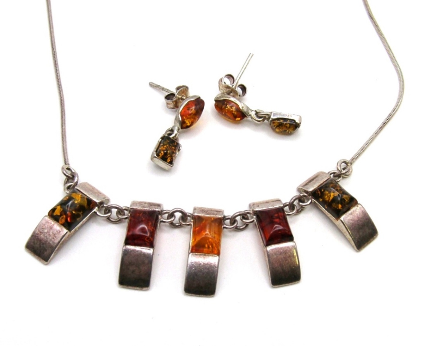 10 DWT. 18″ NECKLACE & PIERCED DANGLE EARRINGS. NECKLACE STAMPED 925.