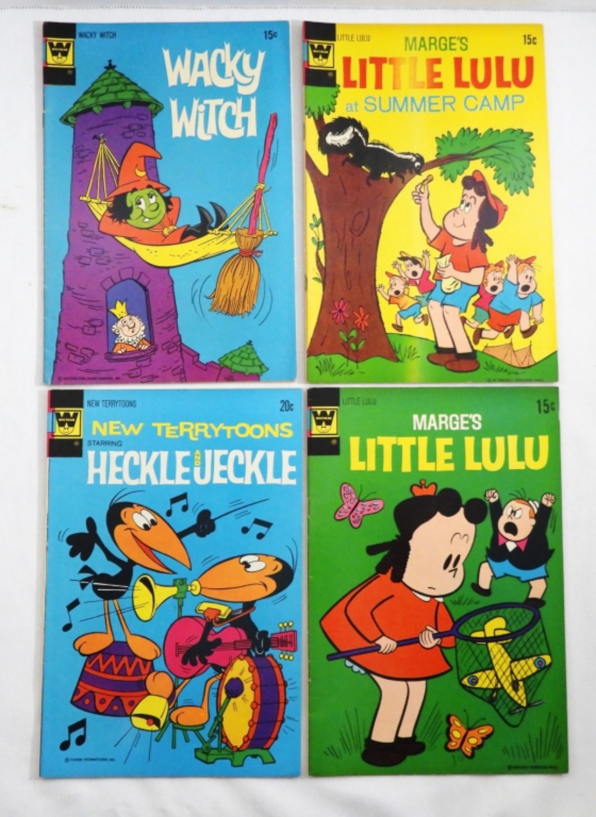 FINE OR BETTER,1- 20 CENT ISSUE – HECKLE AND JECKLE, 3- 15 CENT ISSUES- WACKY WITCH, (2) LITTLE LULU
