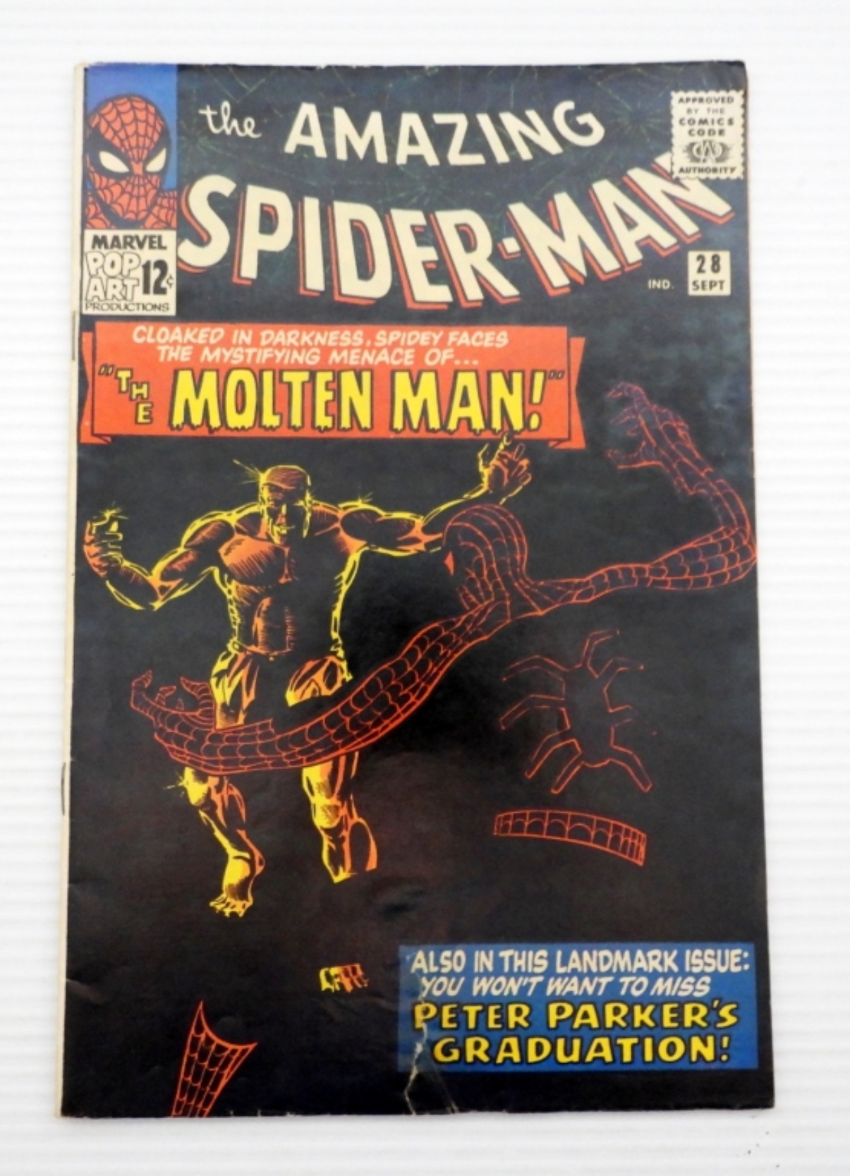 KEY – 1st MOLTEN MAN – 1 1/2" TEAR BOTTOM of BOOK nearly through whole book < cover taped inside