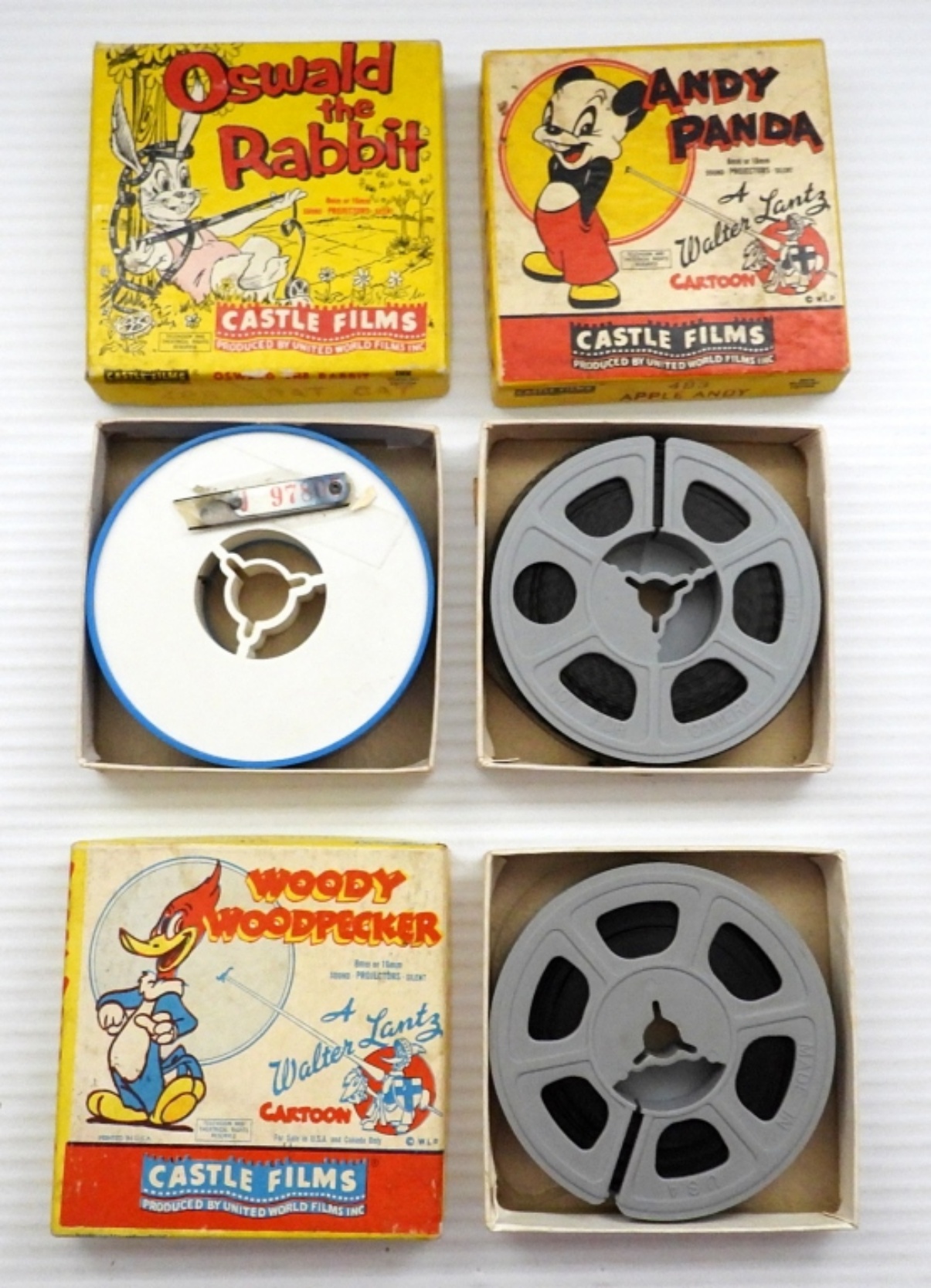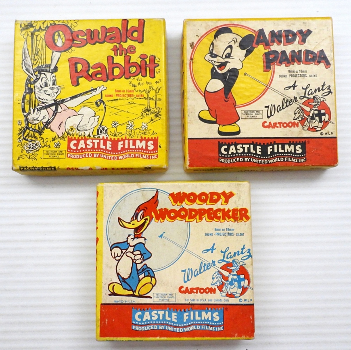ANDY PANDA “APPLE ANDY”, OSWALD THE RABBIT “BRAT CAT”, WOODY WOODPECKER “TERMITES FROM MARS” – IN ORIGINAL BOXES