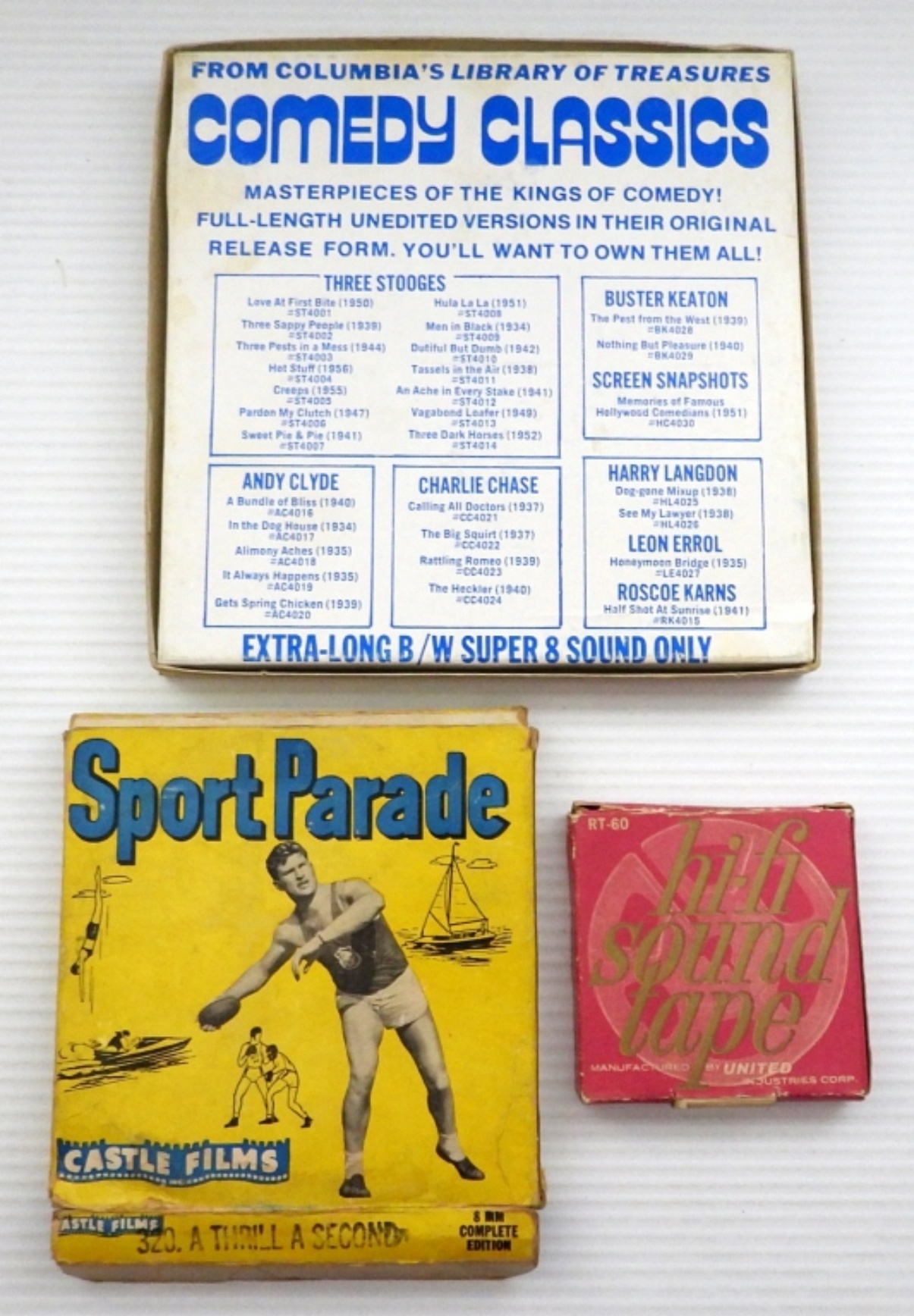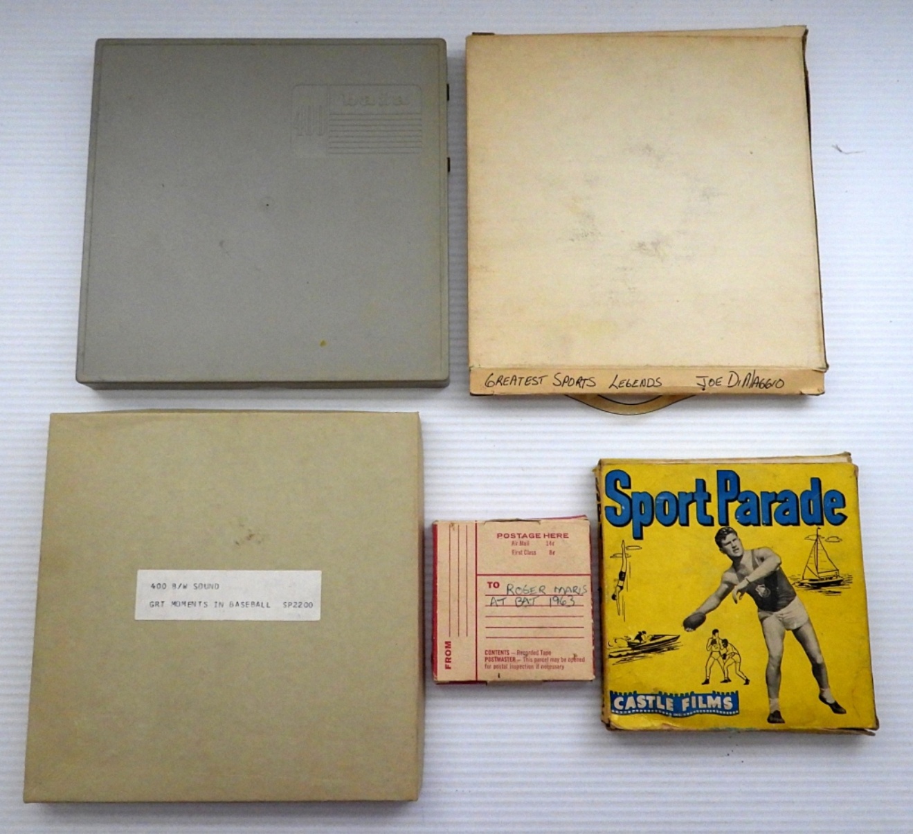 CASTLE FILMS SPORTS PARADE “A THRILL A SECOND”, GREATEST MOMENTS IN BASEBALL, GREATEST SPORTS LEGENDS JOE DIMAGGIO, ROGER MARIS AT BAT 1963, & MORE – IN ORIGINAL BOXES