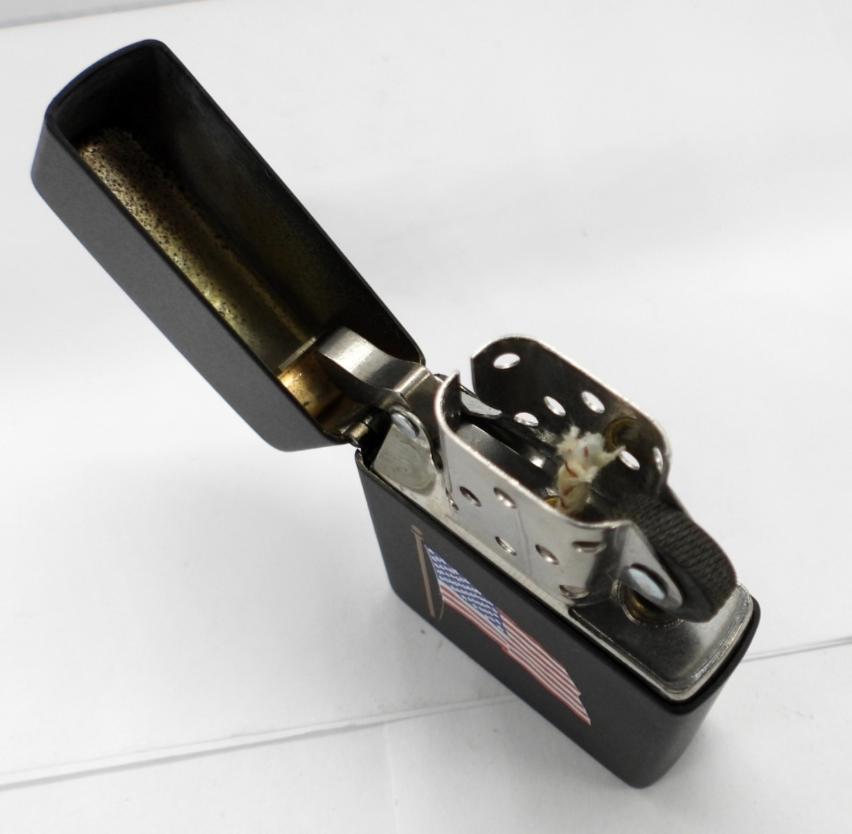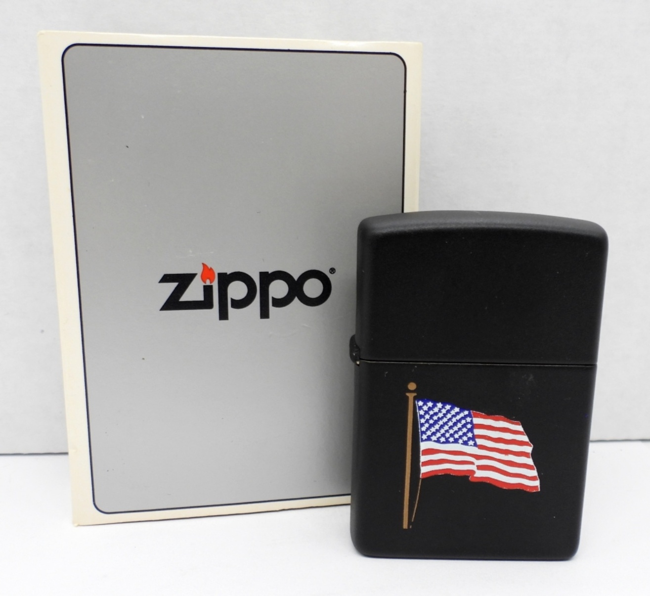 UNFIRED, FLAG ON THE FRONT, MATTE BLACK, IN A ZIPPO BOX