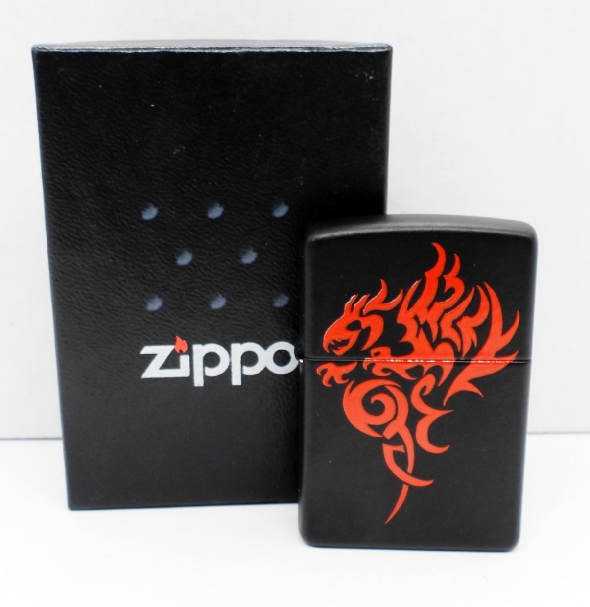 UNFIRED, MATTE BLACK WITH A RED DRAGON, IN A ZIPPO BOX