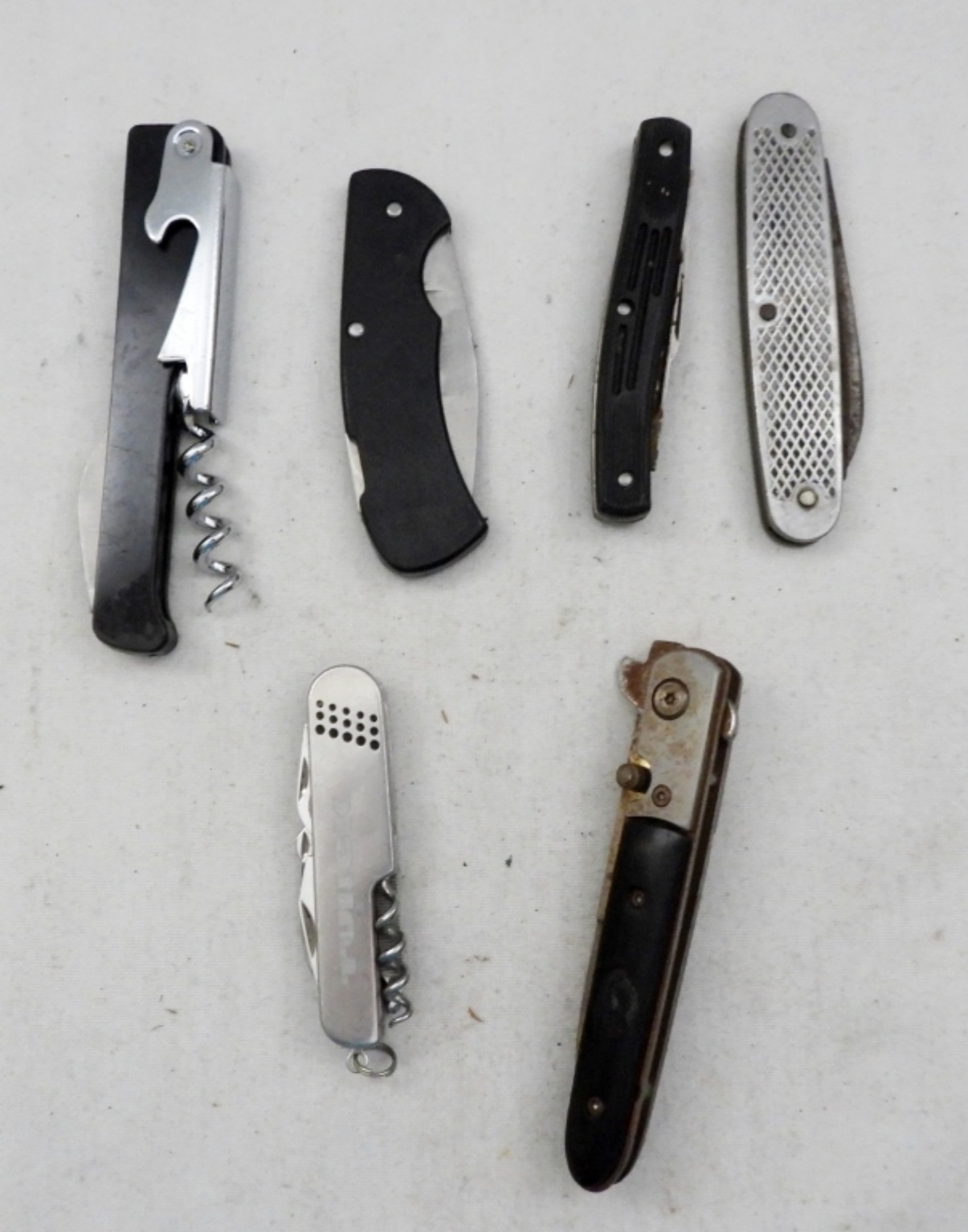 2-Blade Unmarked, 3-Blade Imperial Ireland, Single Blade Frost Cutlery, Single Blade Steel Warrior, Blackburn Turck Multi-Tool Pocketknife, Corkscrew Knife Bottle Opener; Used Conditions.