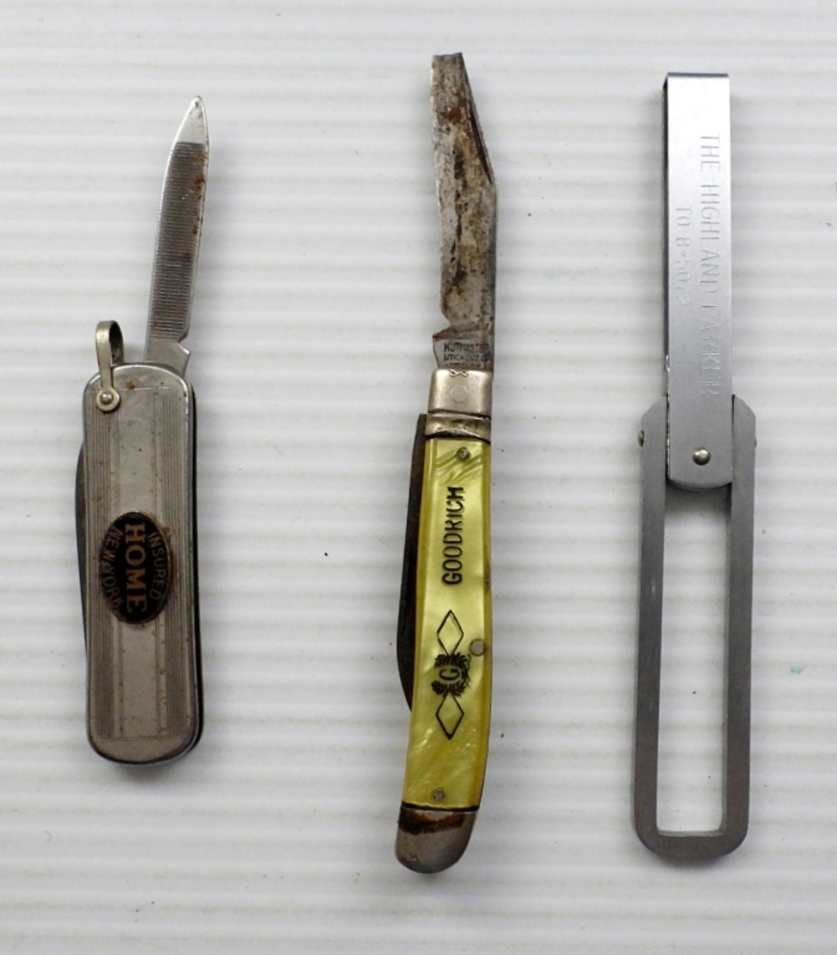 PROMO 2-BLADE FOLDING KNIFE (with One blade Tip broke) USA RARE – PLUS (2) OTHER ADVERTISE KNIVES