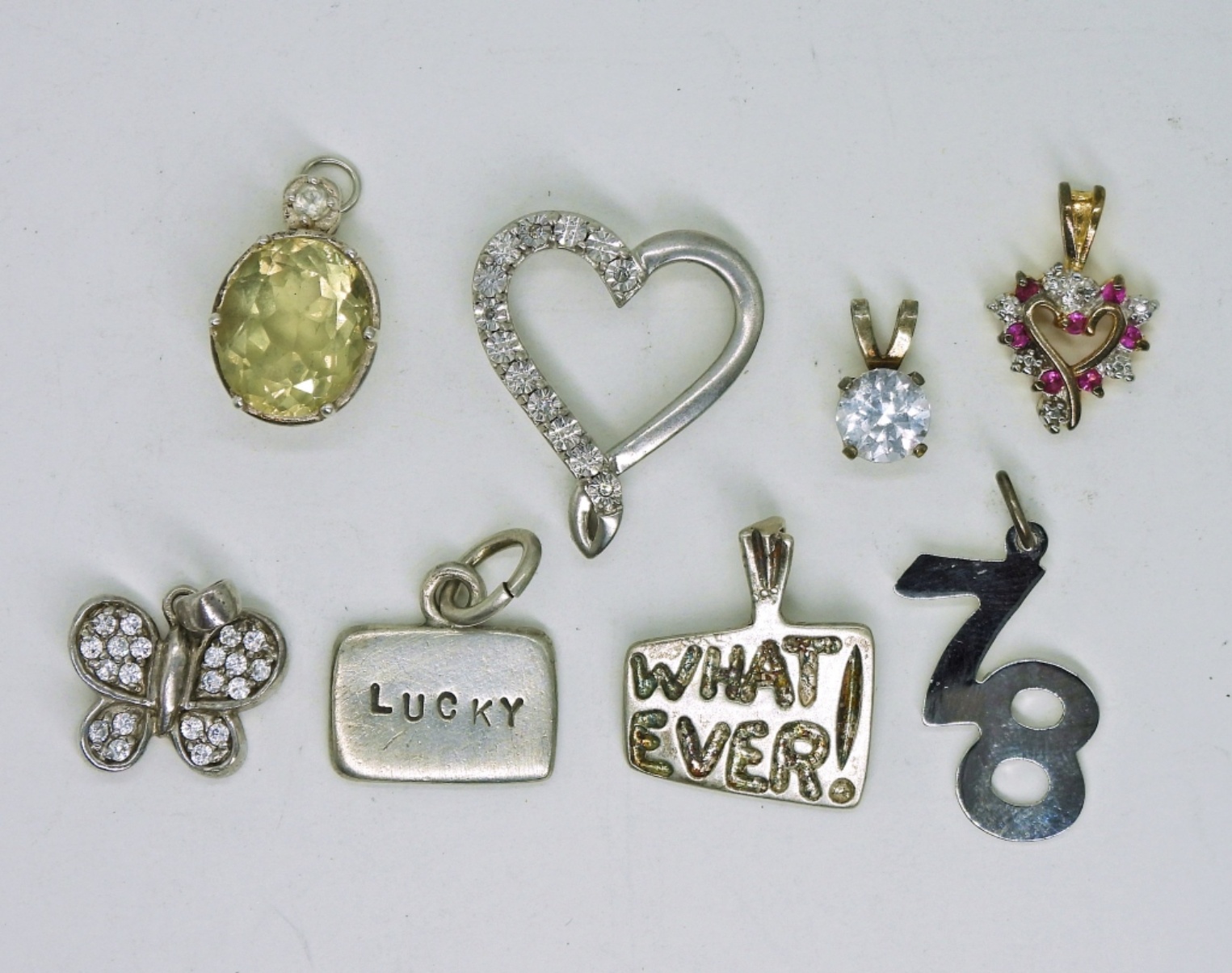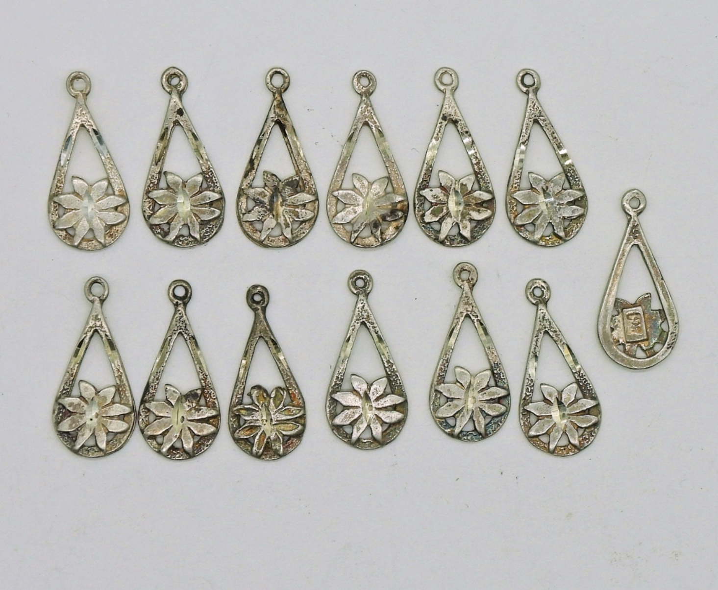 13 Identical Sterling Flower Pendants, Marked 925. 8 Various Styles & Gemstones Pendants. 13.4 DWT
