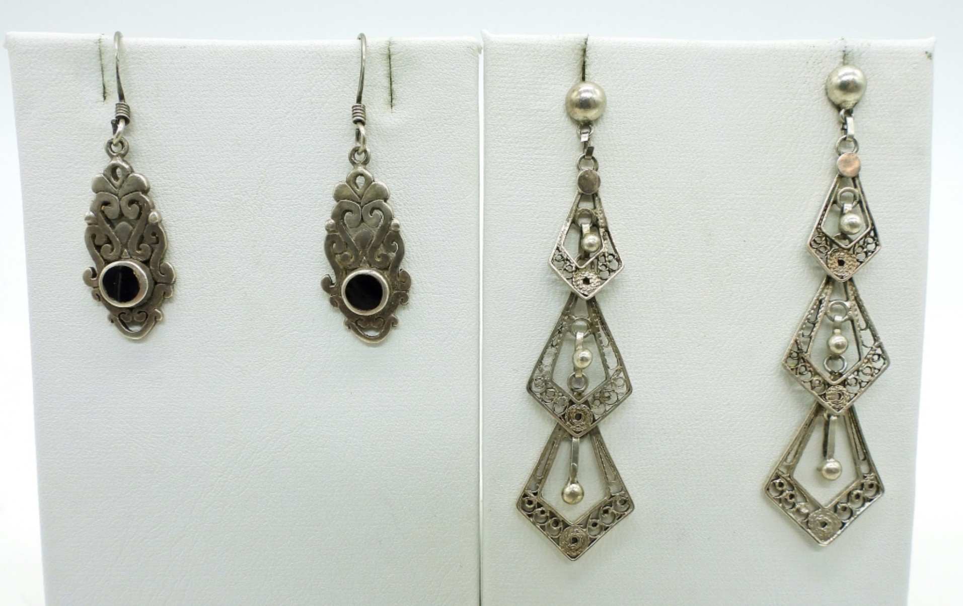 Two Pair of Sterling Dangling Earrings. One pair Marked 925. 6 DWT