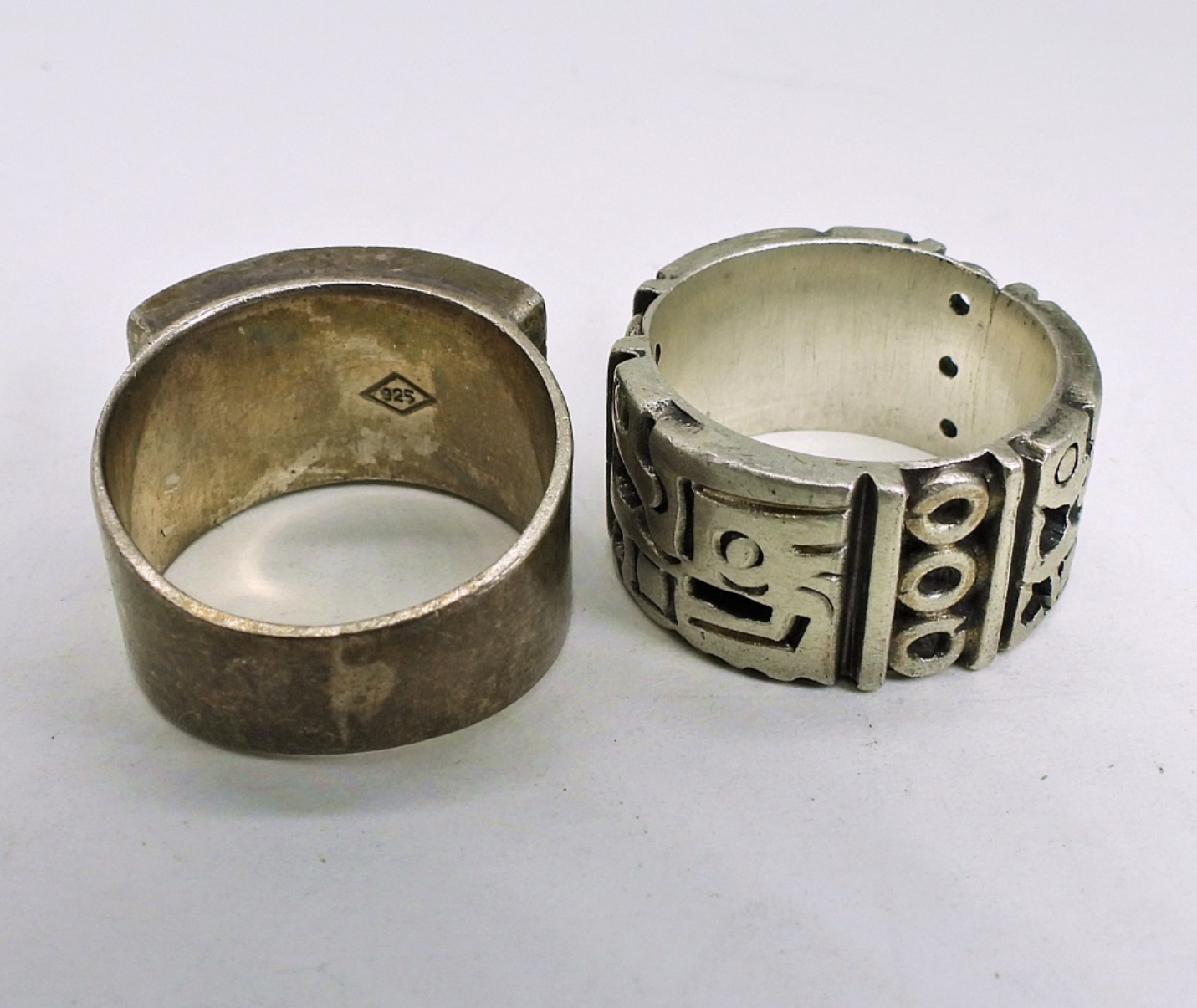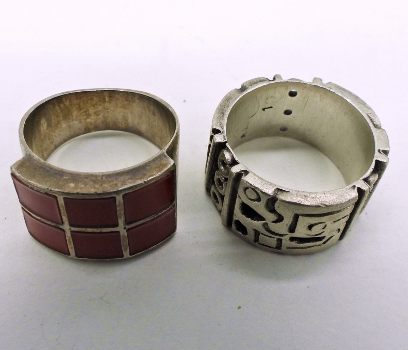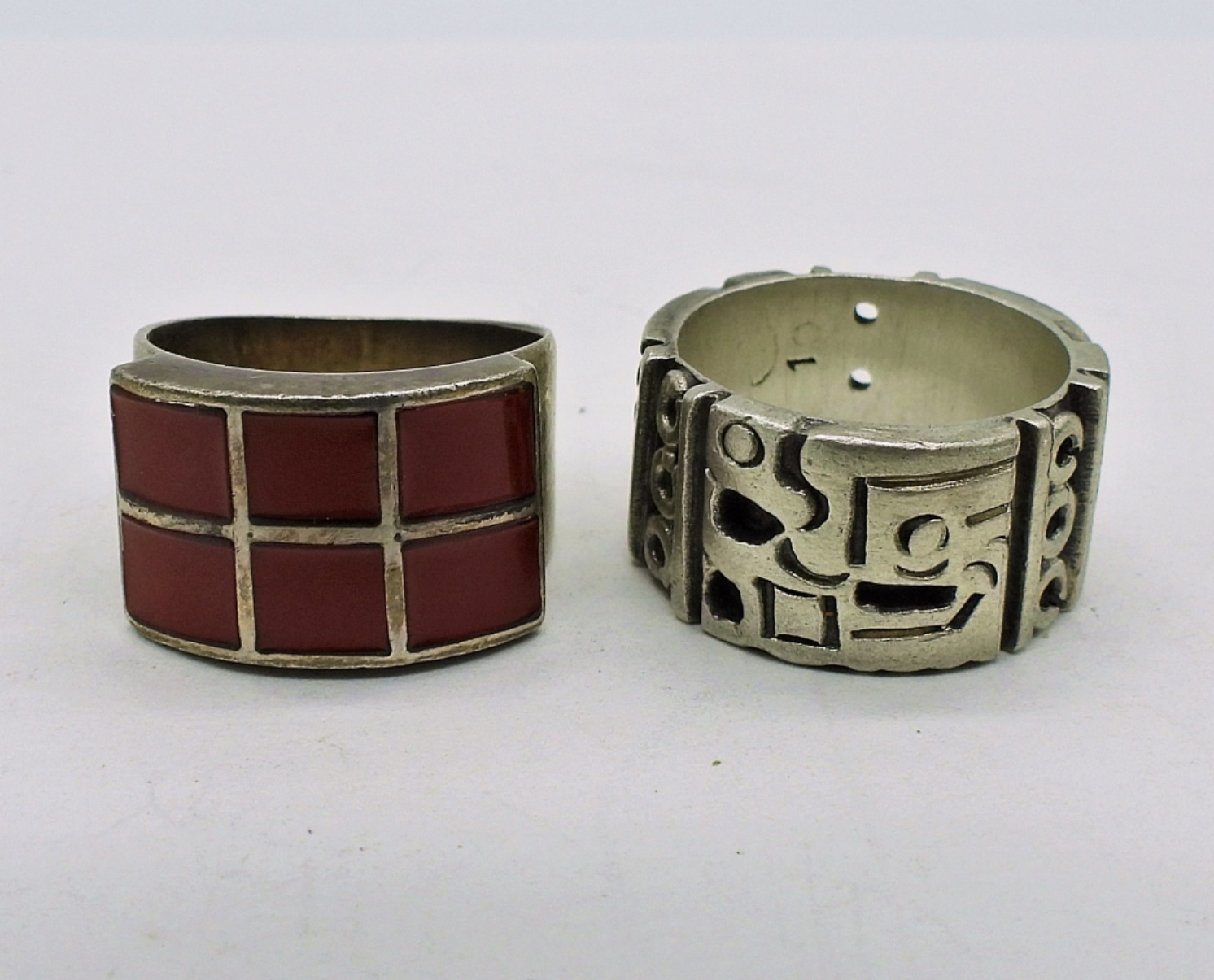 Two Sterling Rings/Bands. One with Red inlay. Sizes 6 and 7. 12 DWT