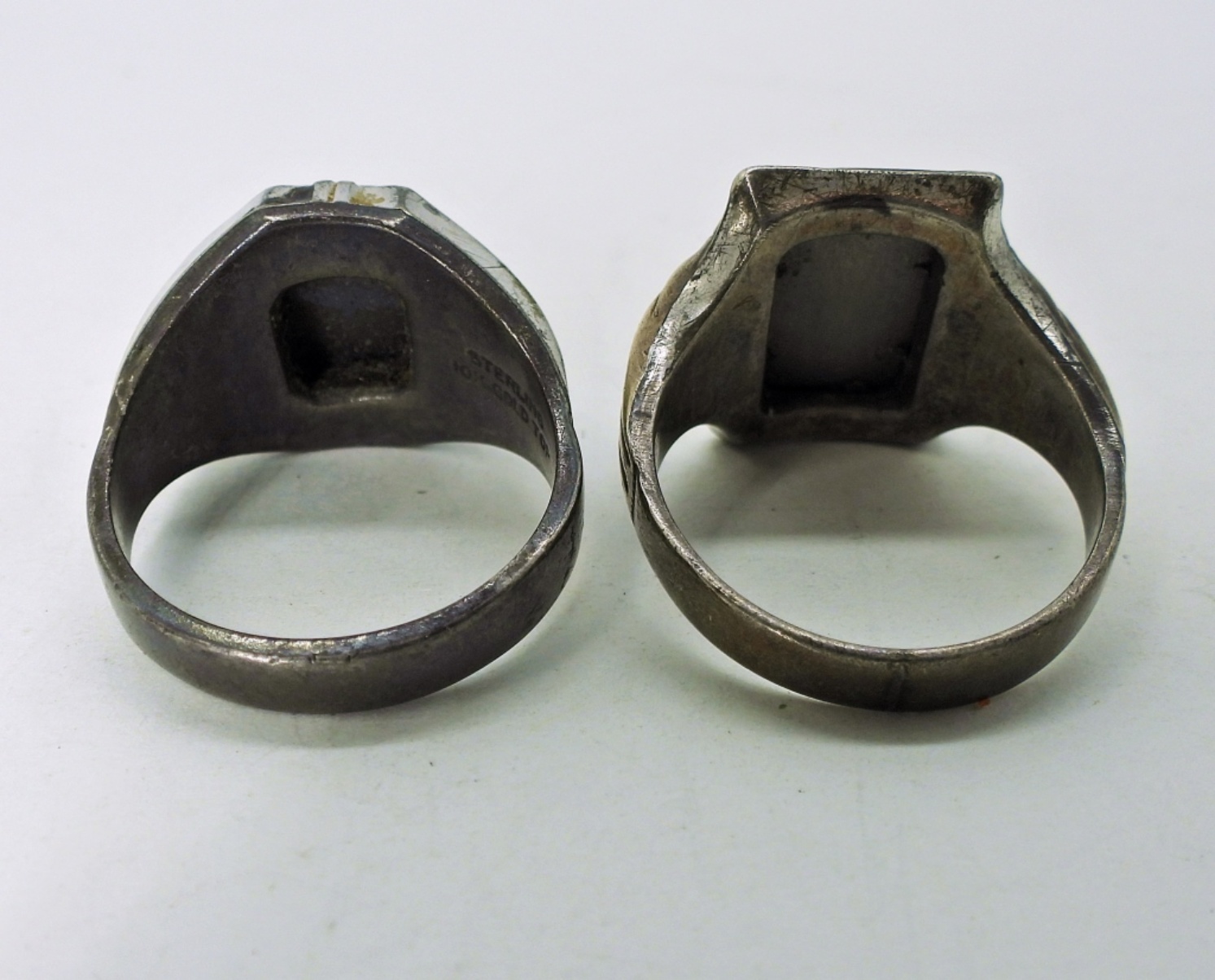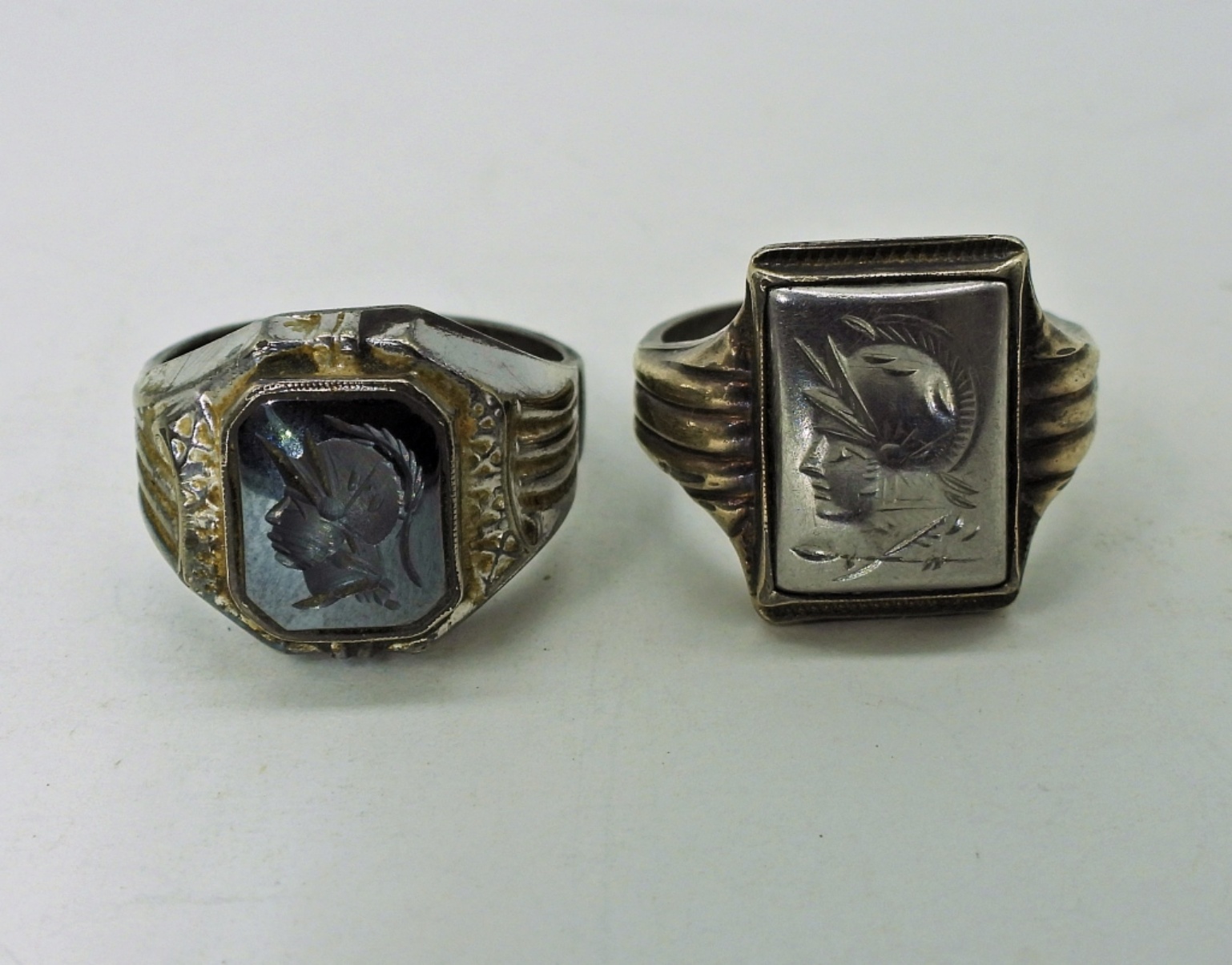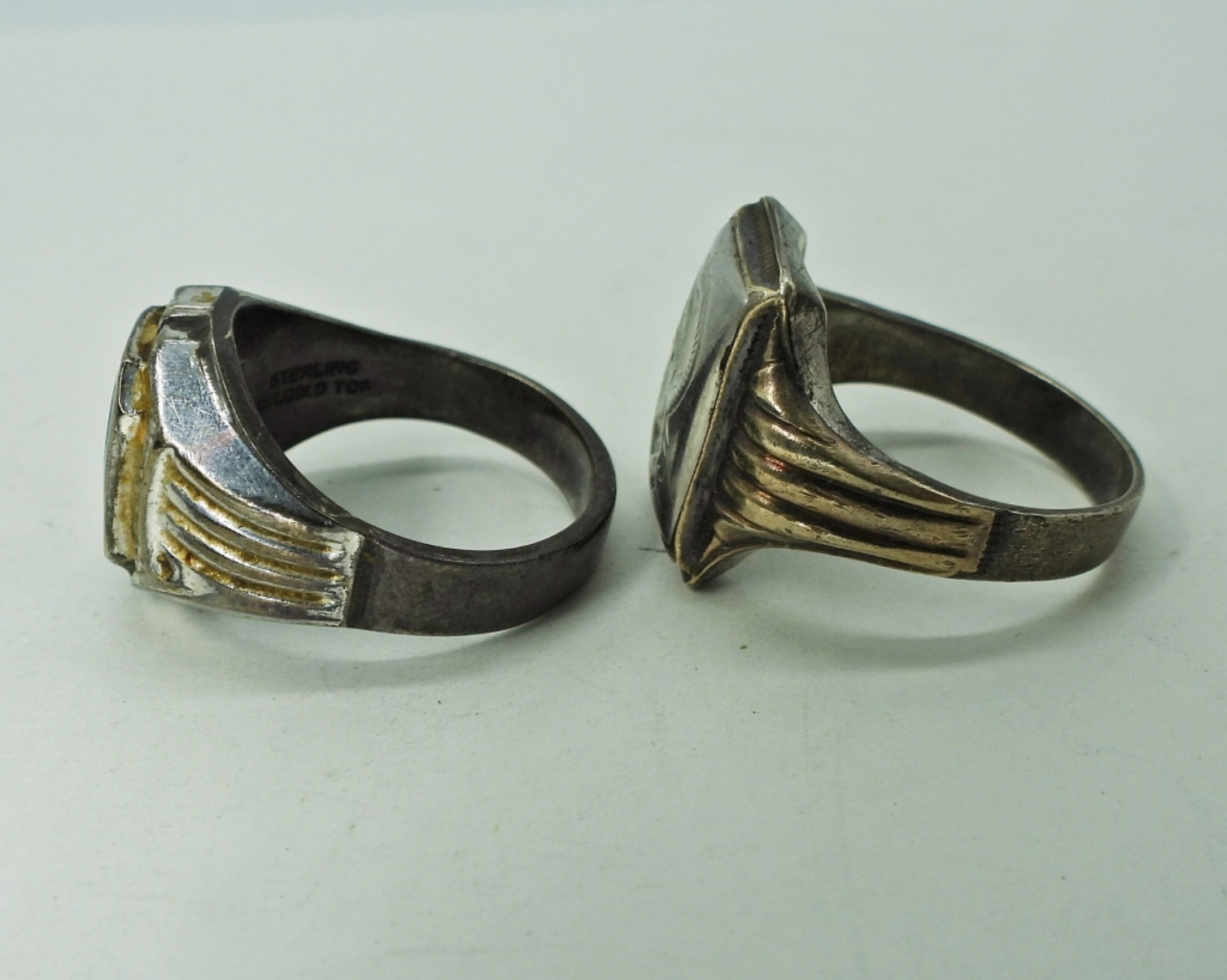 Two Vintage Roman Soldier Rings with 10K Gold Tops, Marked “Sterling 10k Gold Top”. Both are size 11. Need to be cleaned. 11.3 DWT