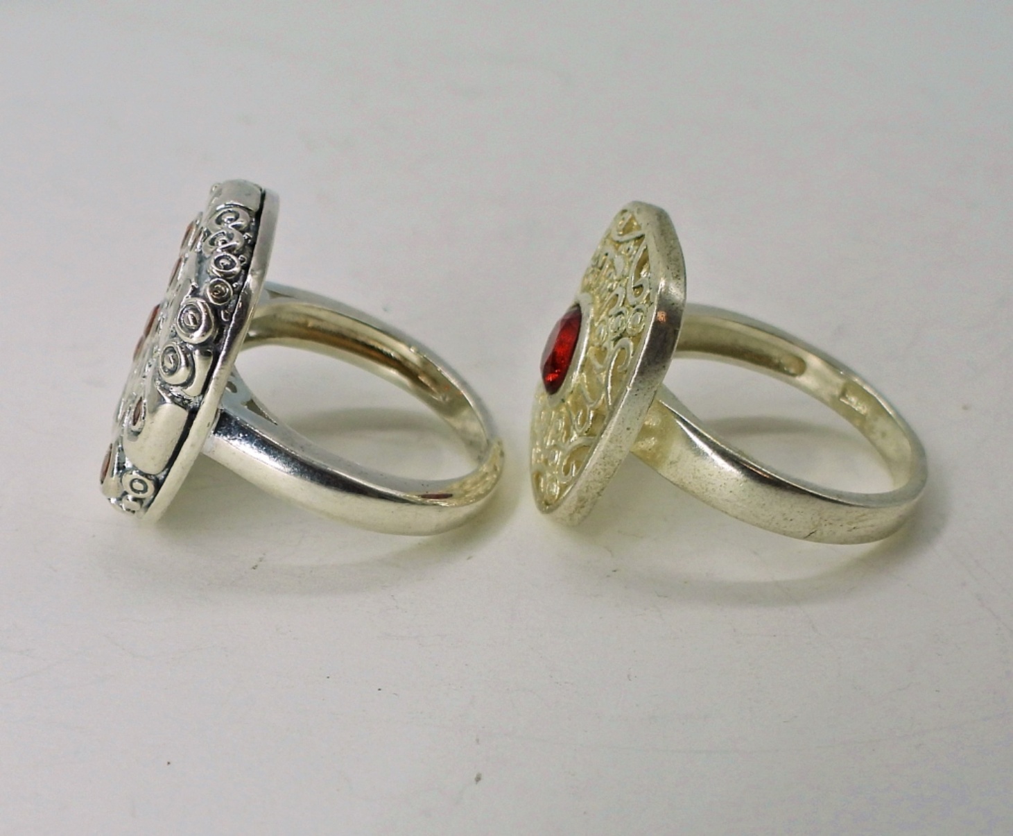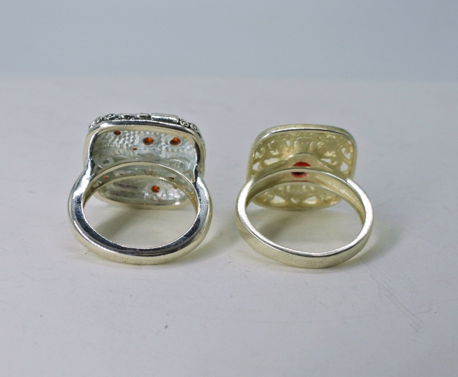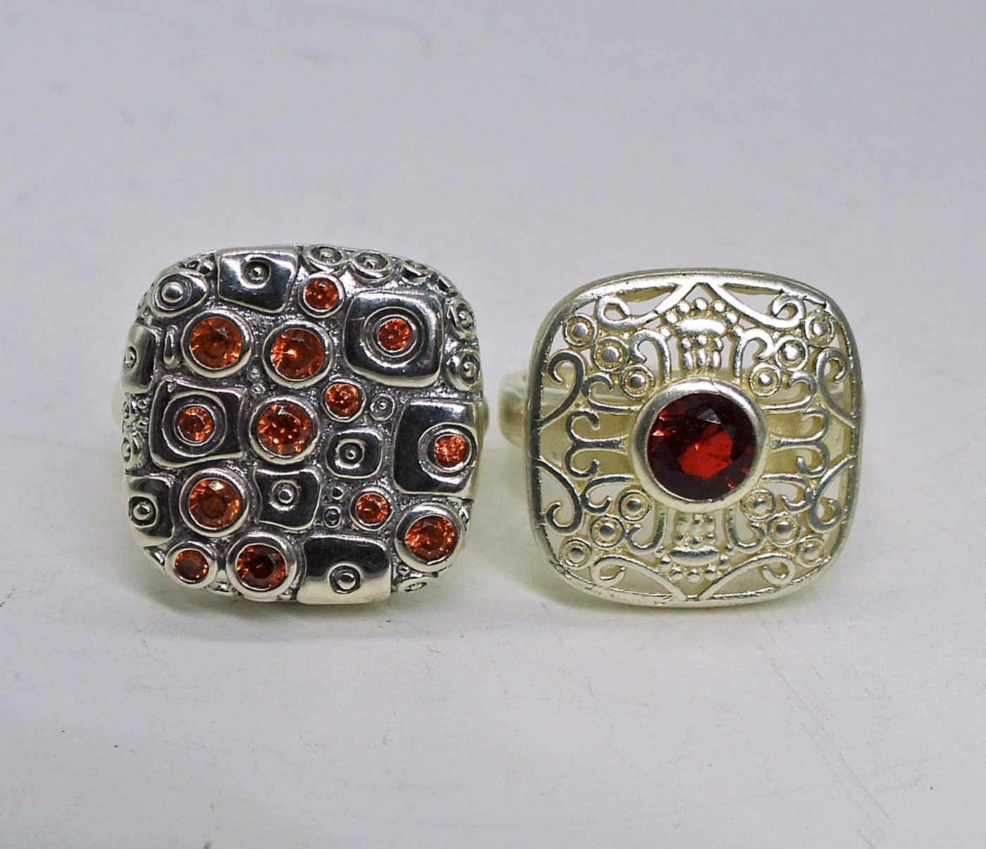 Two Sterling Red and Orange Gemstone Fashion Rings. Size 7 and 8. 8 DWT