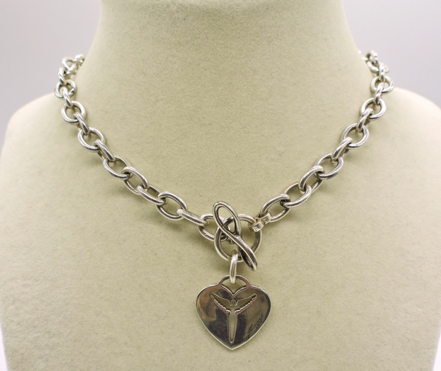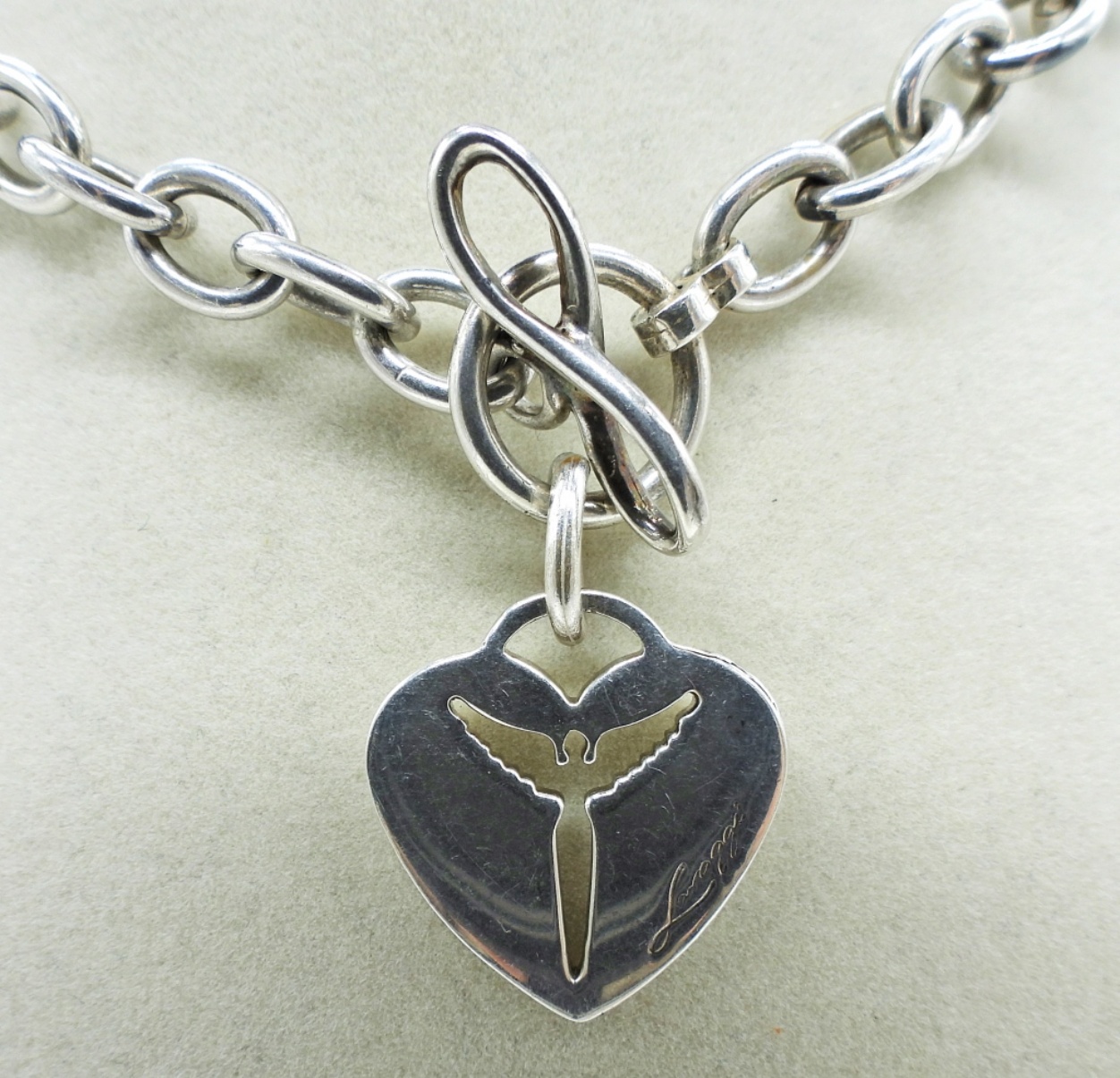 Lavaggi Sterling Silver Angel Heart Charm Link Choker Necklace, 15″. 27 DWT