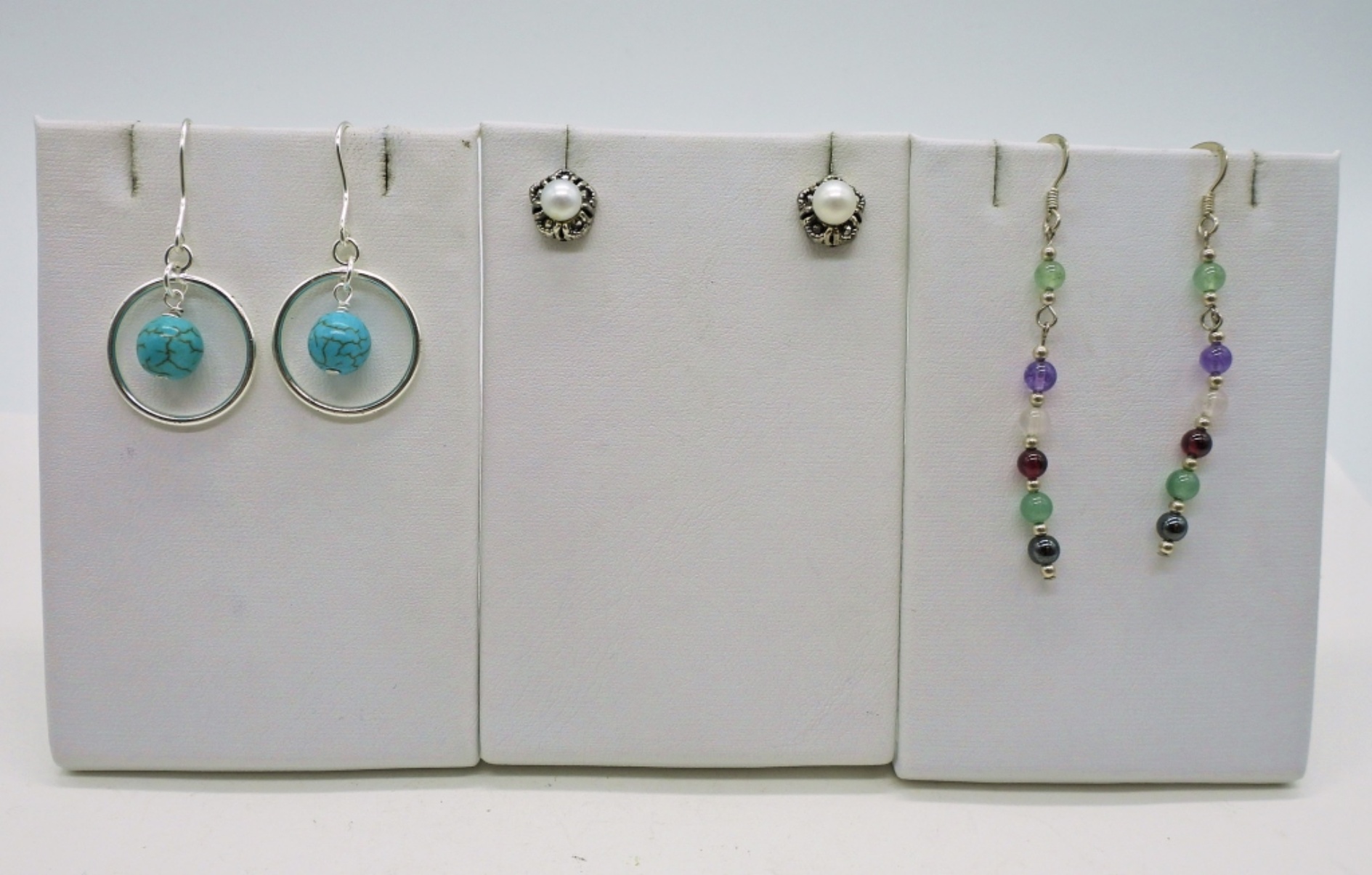 Three Pair of Sterling Beaded Earrings. 8 DWT