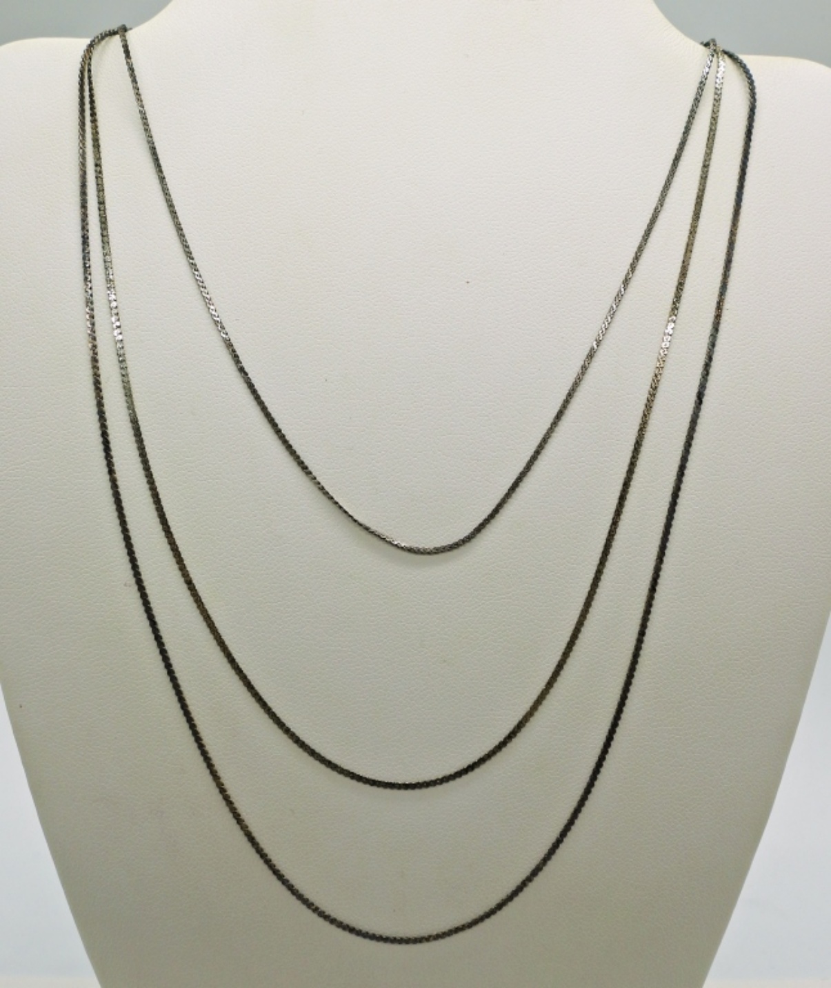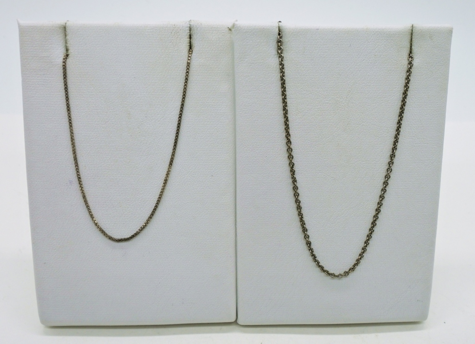 Five Sterling Silver Chains, Lengths are Two 17.5″, 18″, 16″, 15″. Marked 925. 5.8 DWT