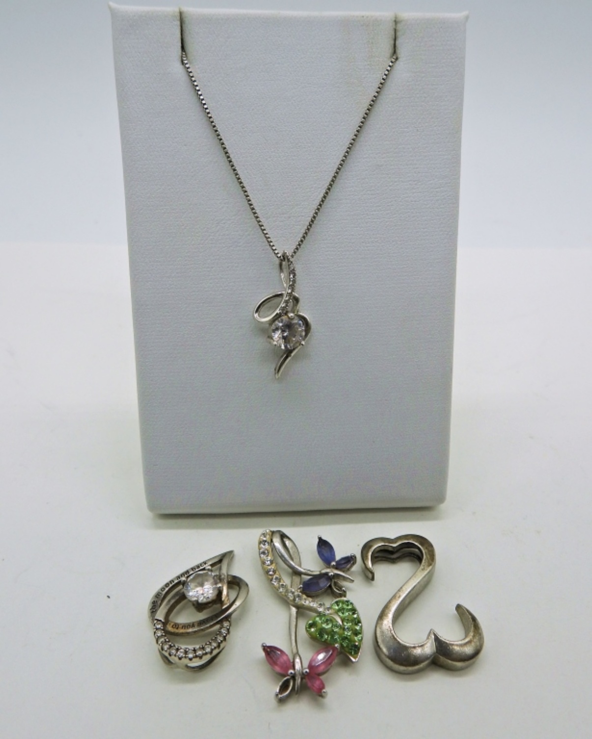 Four Sterling Silver Charms with Gemstones. One 18″ Sterling Chain. 8.6 DWT