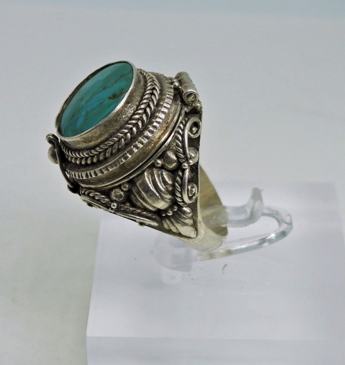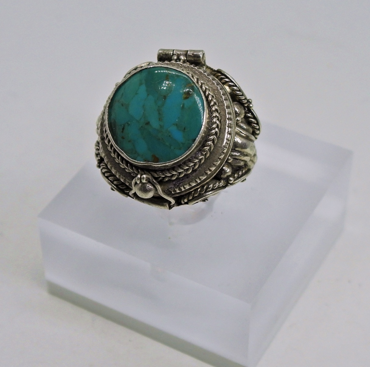 Vintage Sterling “Poison Ring”, Size 7 with a Gemstone Top. 4.9 DWT