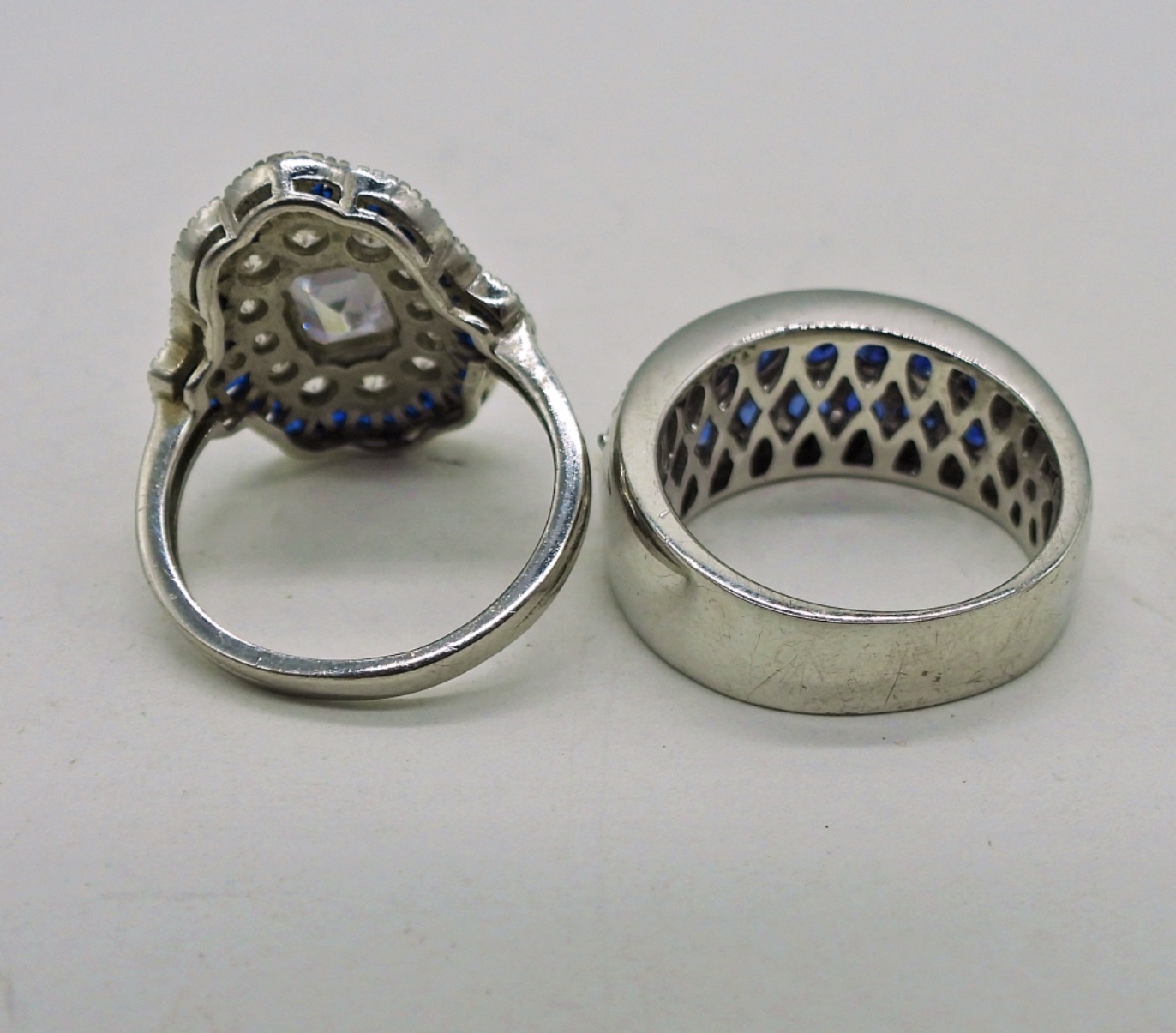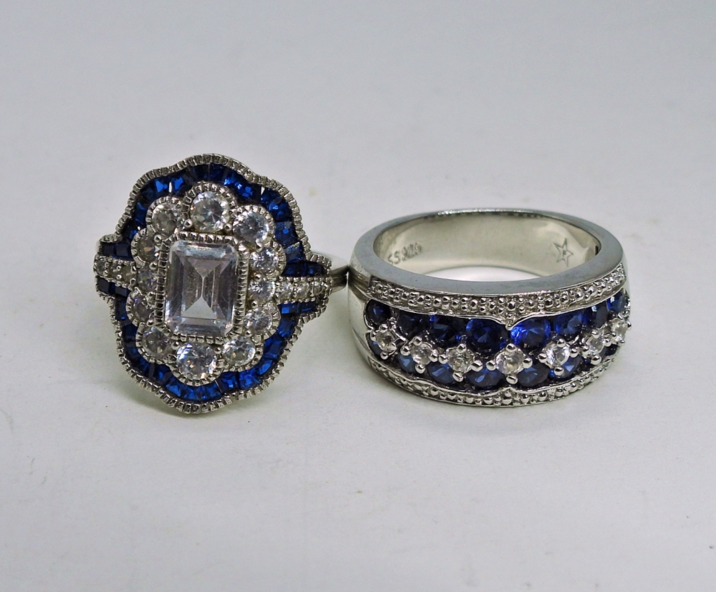 Two Sterling Silver Rings with Blue and White Gemstones. Size 7, Marked 925. 7.2 DWT