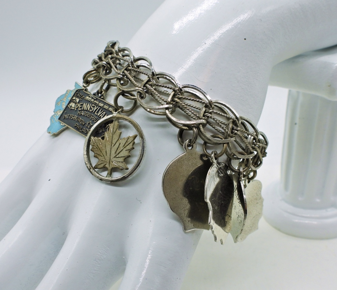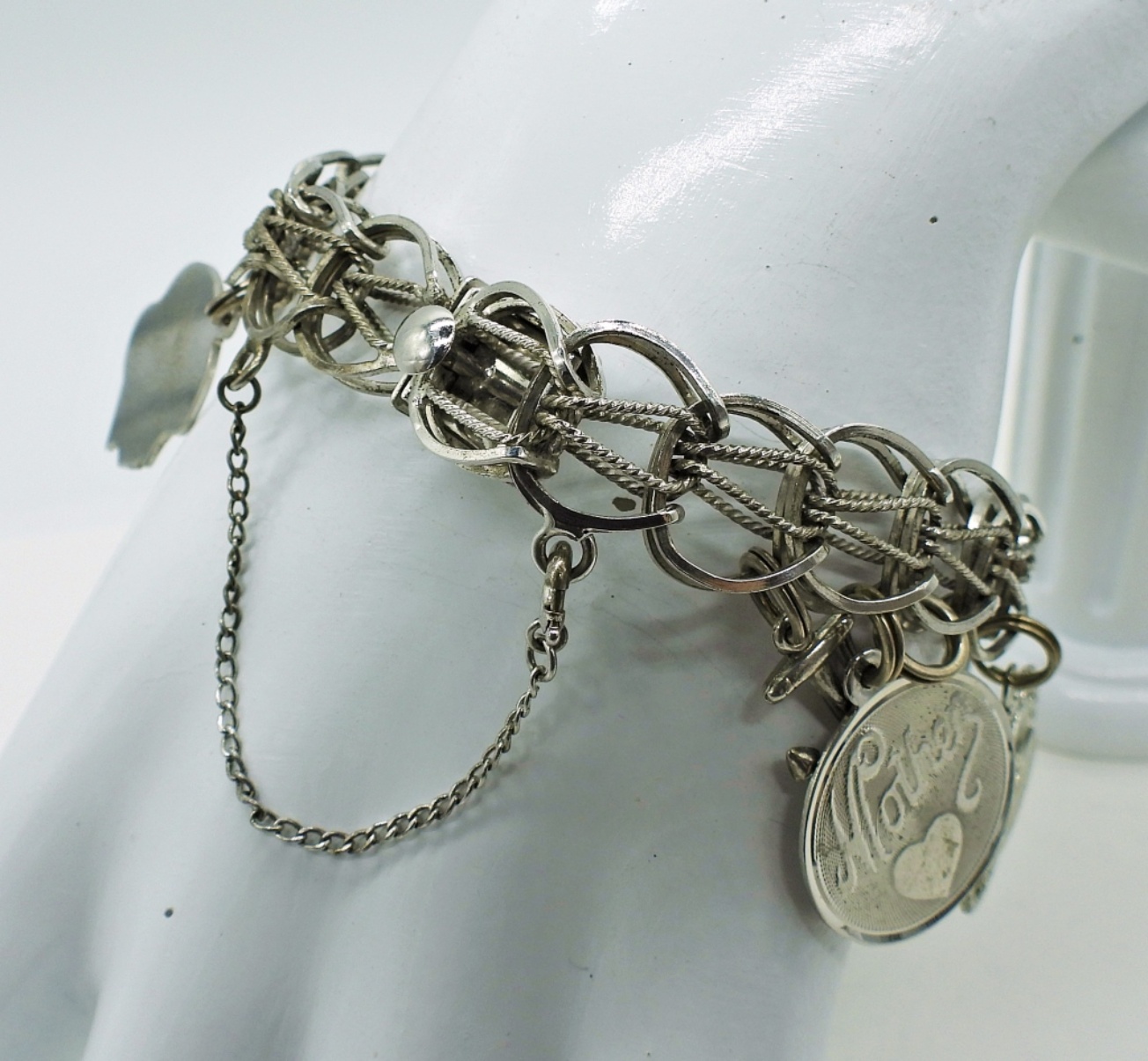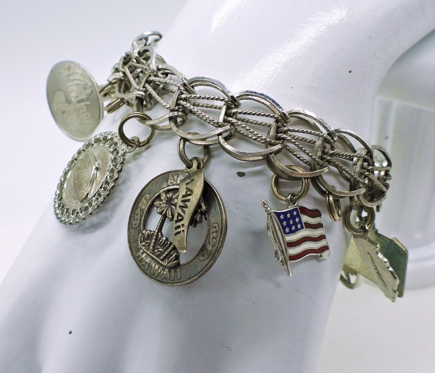 Vintage Sterling Charm Bracelet with 12 Charms, 7″. Circa late 1950’s. 27.6 DWT