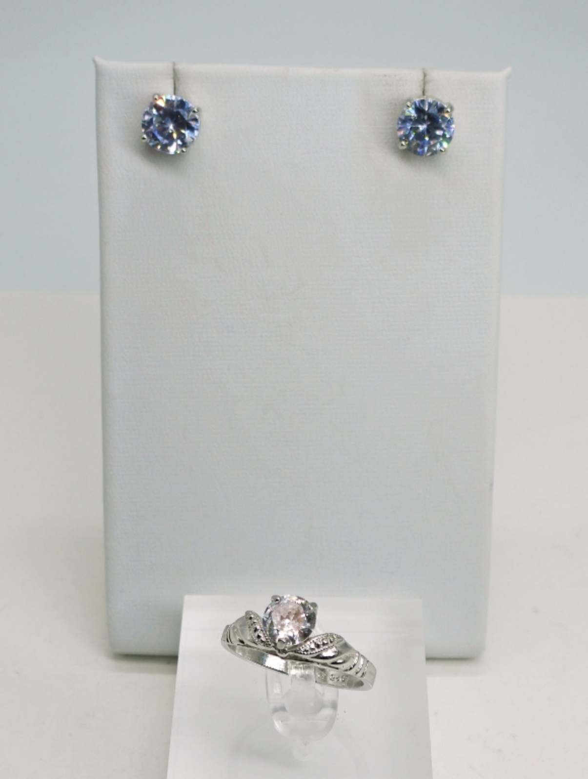 Sterling Diamond Colored Ring, Size 8. Marked 925 Lind. Sterling Diamond Colored Post Earrings, Marked 925. 4DWT