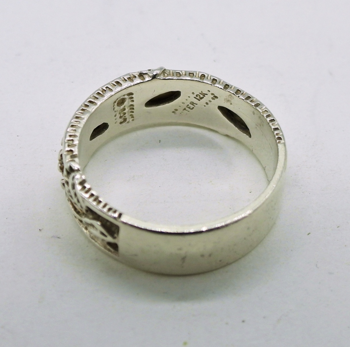 One Band with Grapes and Leaves. Band is Sterling Silver, the 4 tiny leaves are 12k Gold. Size 7, 2.8DWT