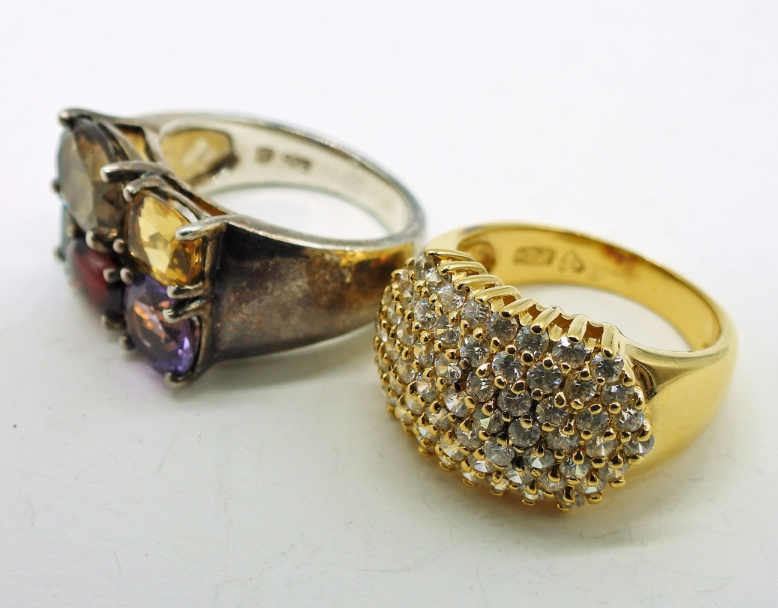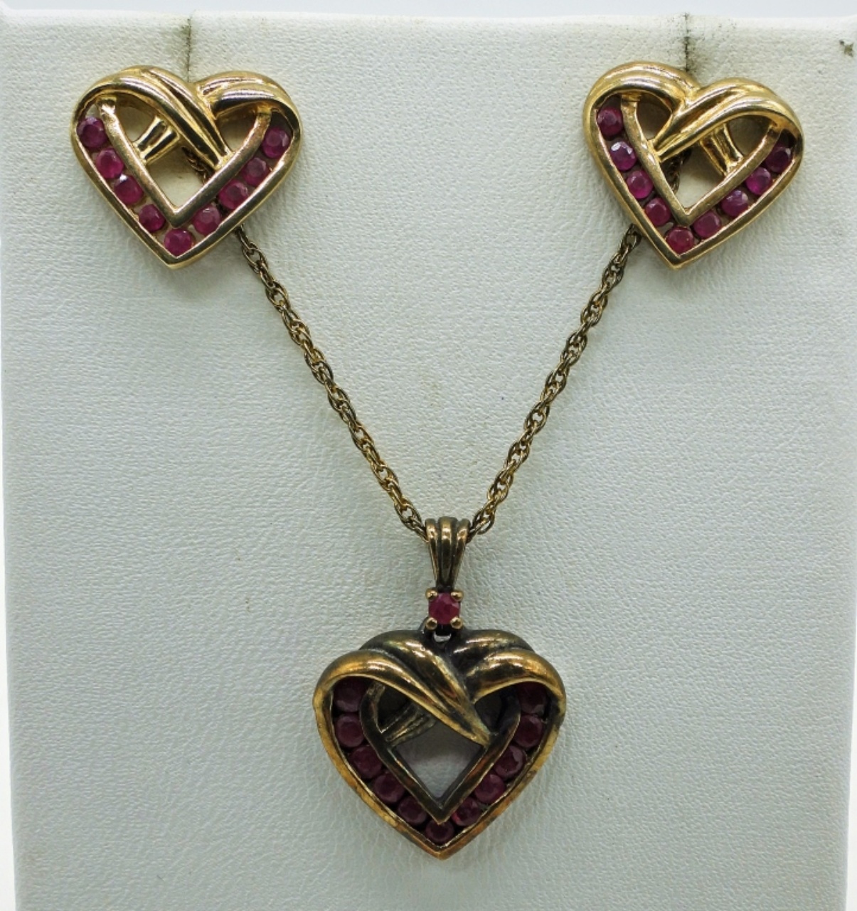 Vintage Sterling, Gold Tone Heart Necklace & Earrings, Necklace is 18″. Two Sterling Rings with Gemstones, one in gold tone. Both size 7. Everything is marked 925. 14.2 DWT