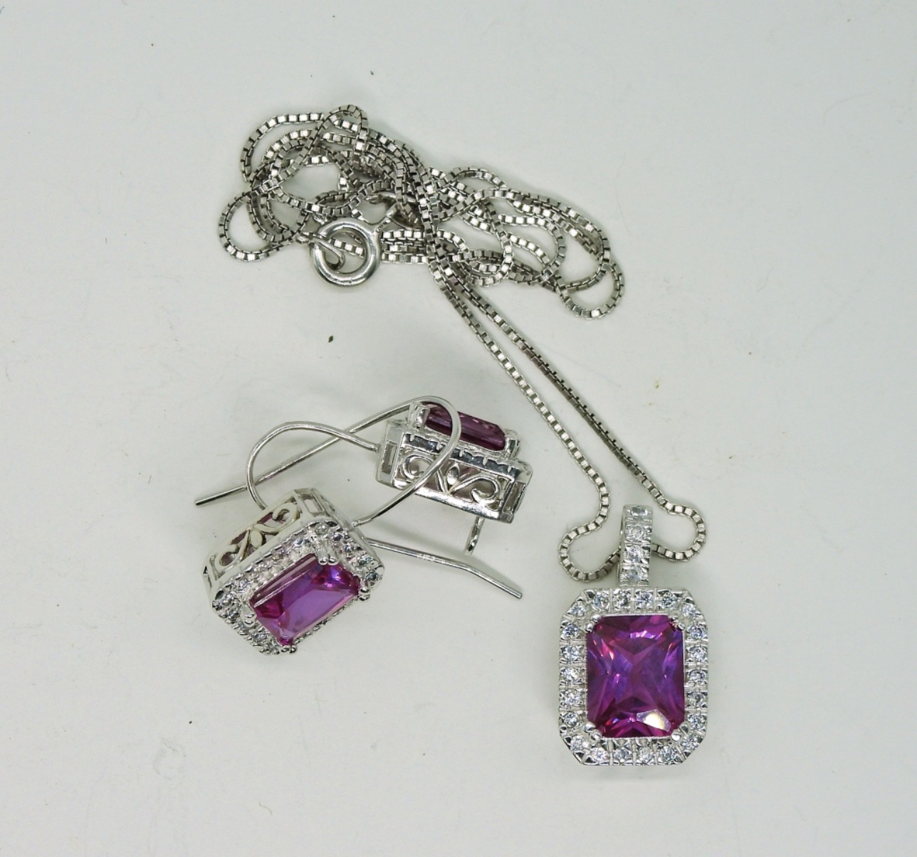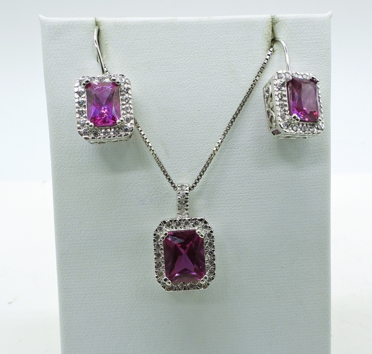 Sterling Necklace & Matching Earring set with Gorgeous Gemstones. 18″ Necklace. All Marked “925 China” 7DWT