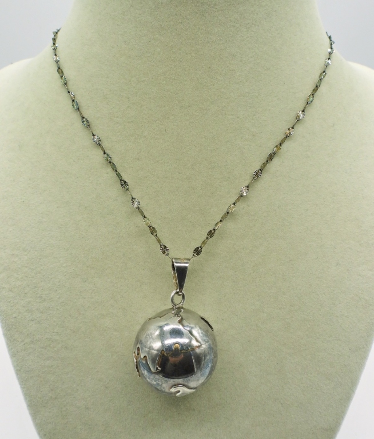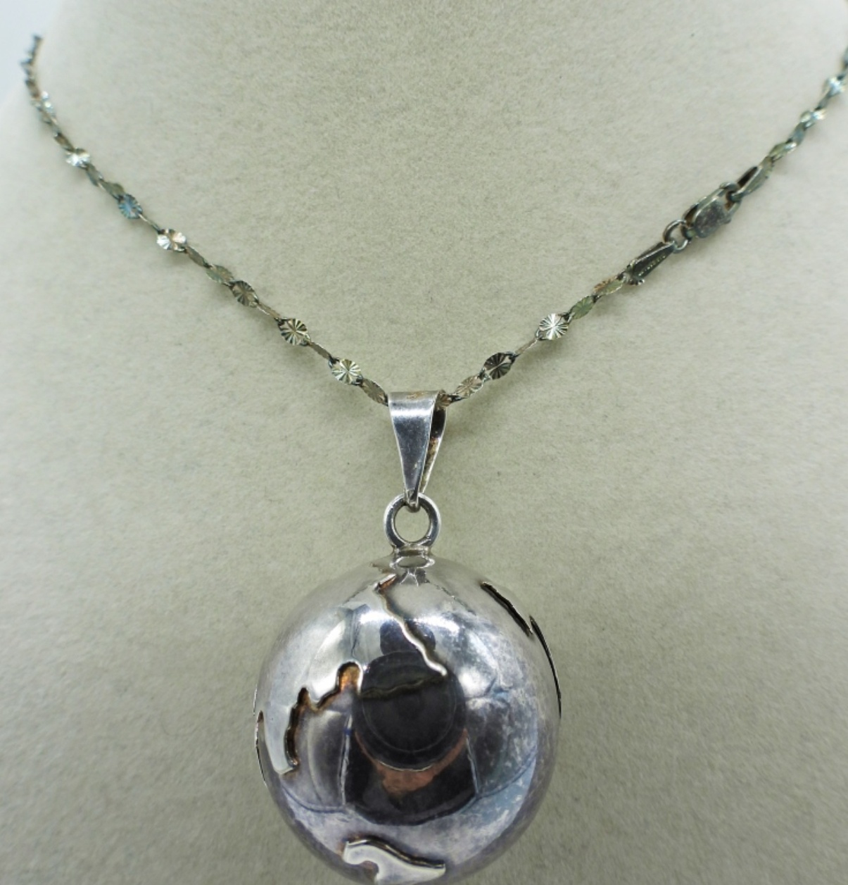 Sterling Harmony Ball Necklace, on a 19″ Danecraft Chain. Marked 925. 11.6 DWT