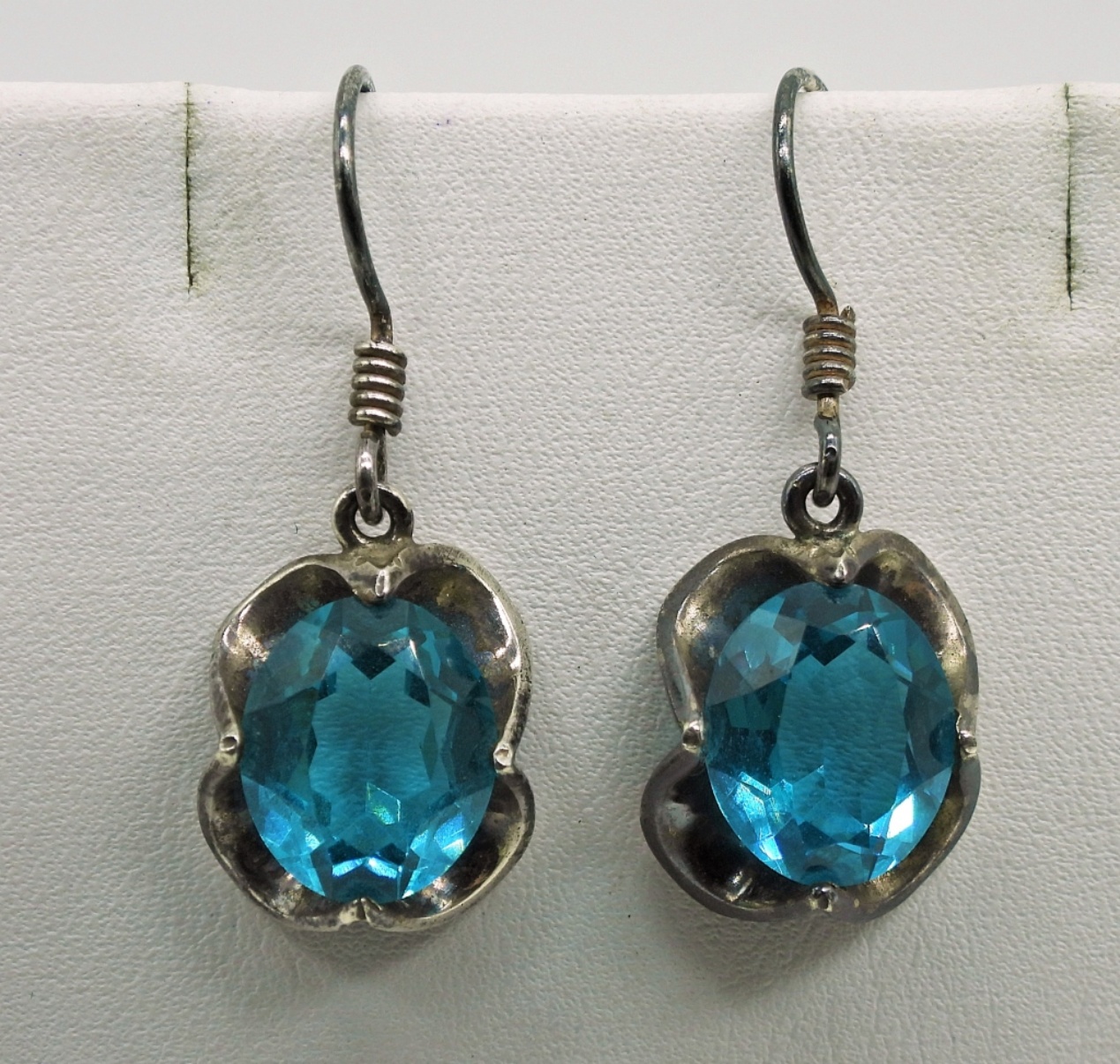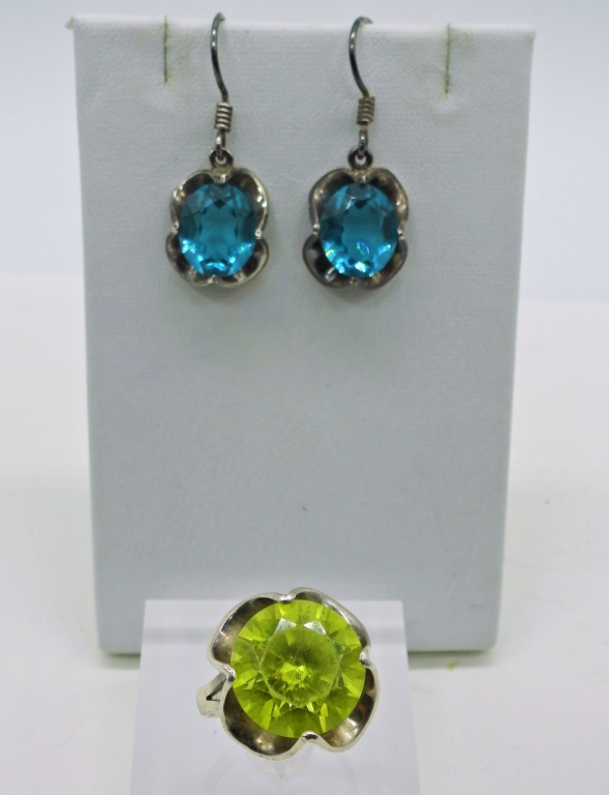 Vintage Sterling “Mexico 925” Earrings with Beautiful Blue Gemstones and a Size 6 Ring with a Peridot Colored Gemstone. 9.9 DWT