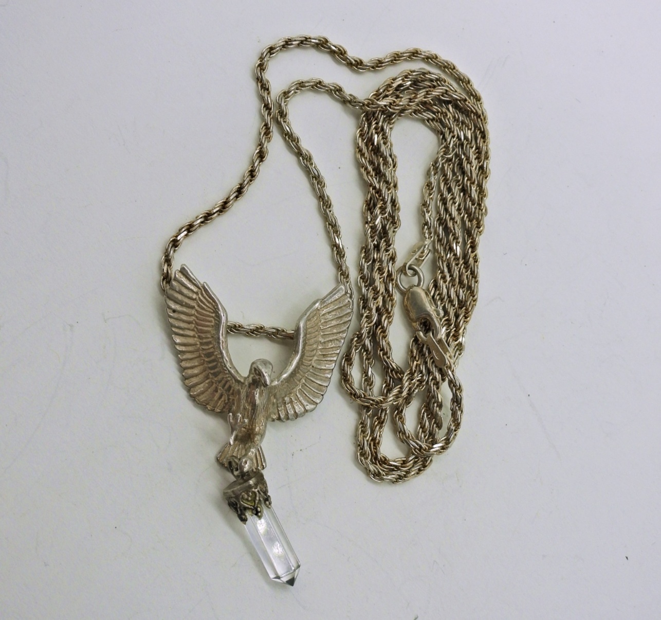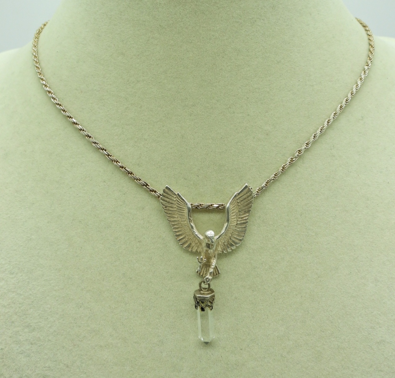 Sterling Eagle Pendant with a crystal point on a Sterling 30″ chain. 9.4 DWT
