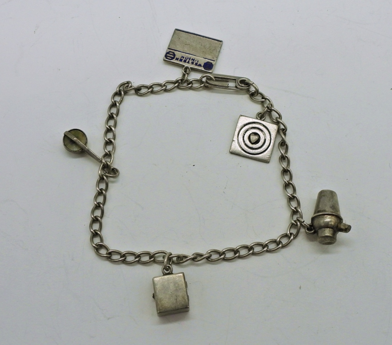 Vintage Sterling Charm Bracelet with 5 Charms, 7″. Size 7 Sterling Ring. 9.9 DWT