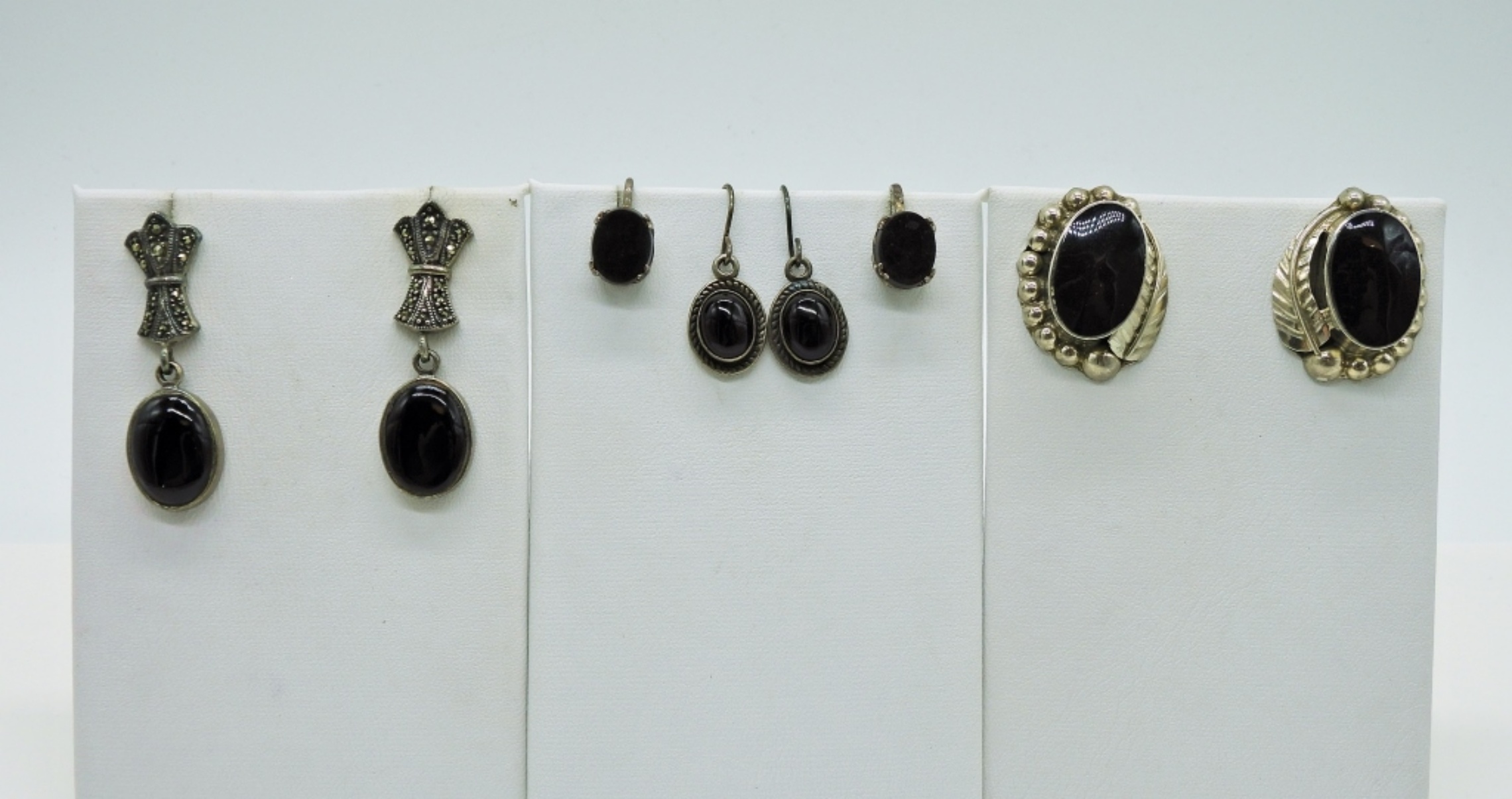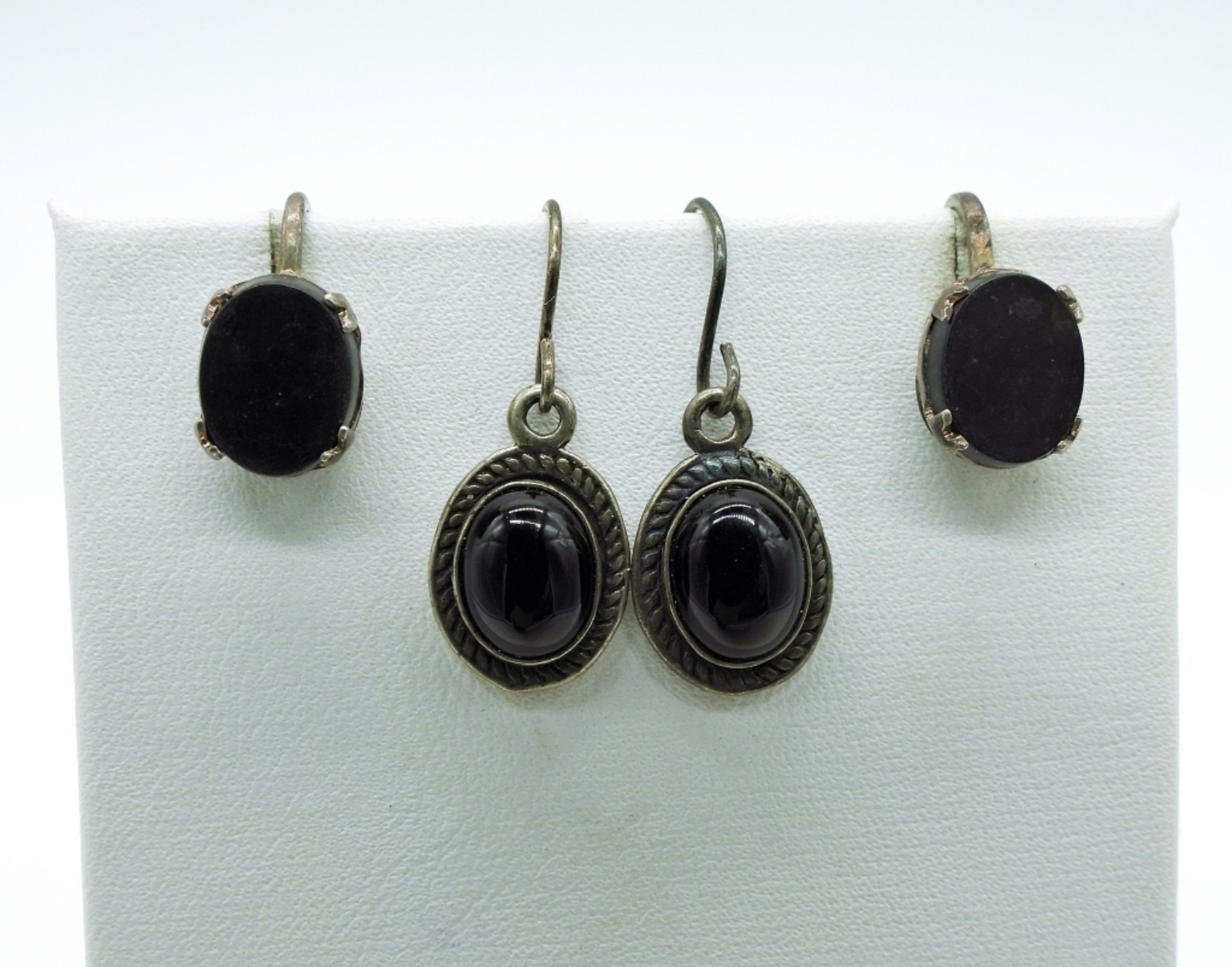 Four pair of Vintage Sterling Black Onyx Colored Gemstones. 17.3 DWT