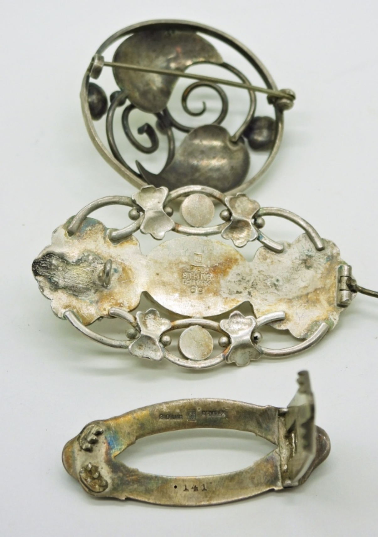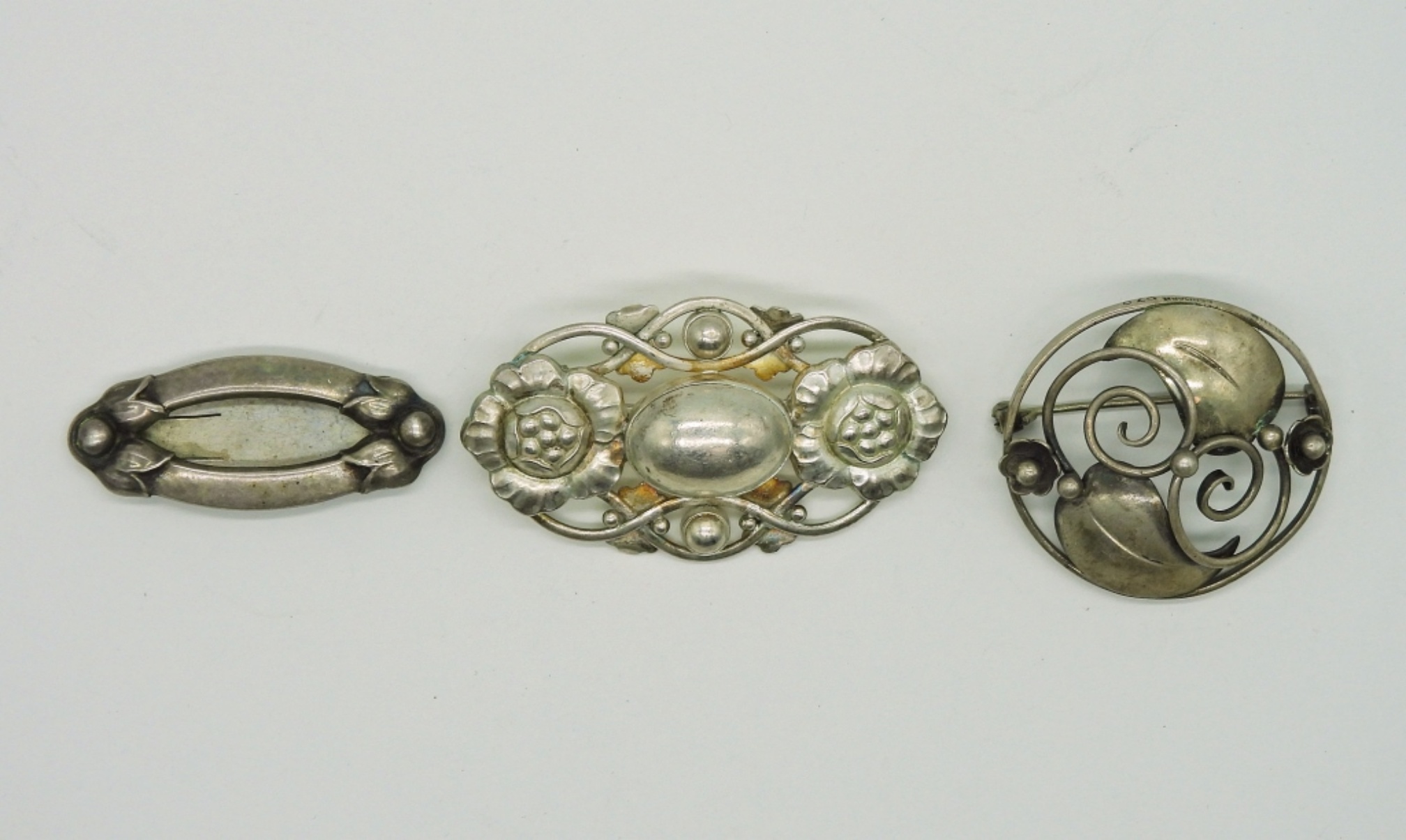 Sterling Brooches & a Clip, Marked “Sterling Denmark”. 20.1 DWT