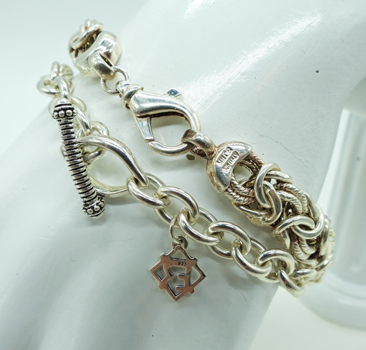 Two Sterling Silver Chain Bracelets, 7.5″ & 8″. Marked “Milor 925 Italy” & “925”. 28.2 DWT